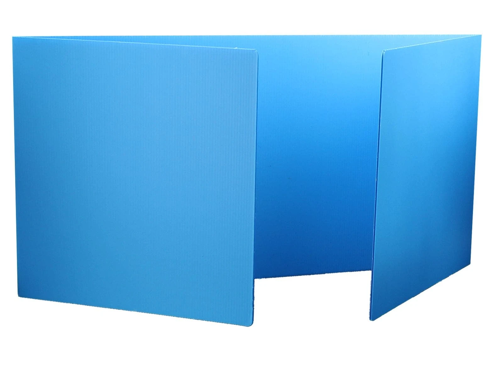 Durable yet lightweight design is easy to transport and stands up to institutional use. Plastic construction allows each barrier to be wiped clean between uses. Rounded corners keep students safe. 46-1/2”W x 18”H. Available in blue only in a set of 12 or 24.