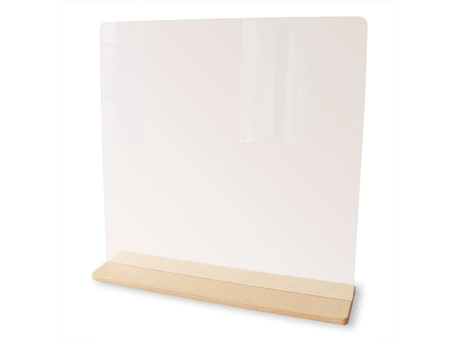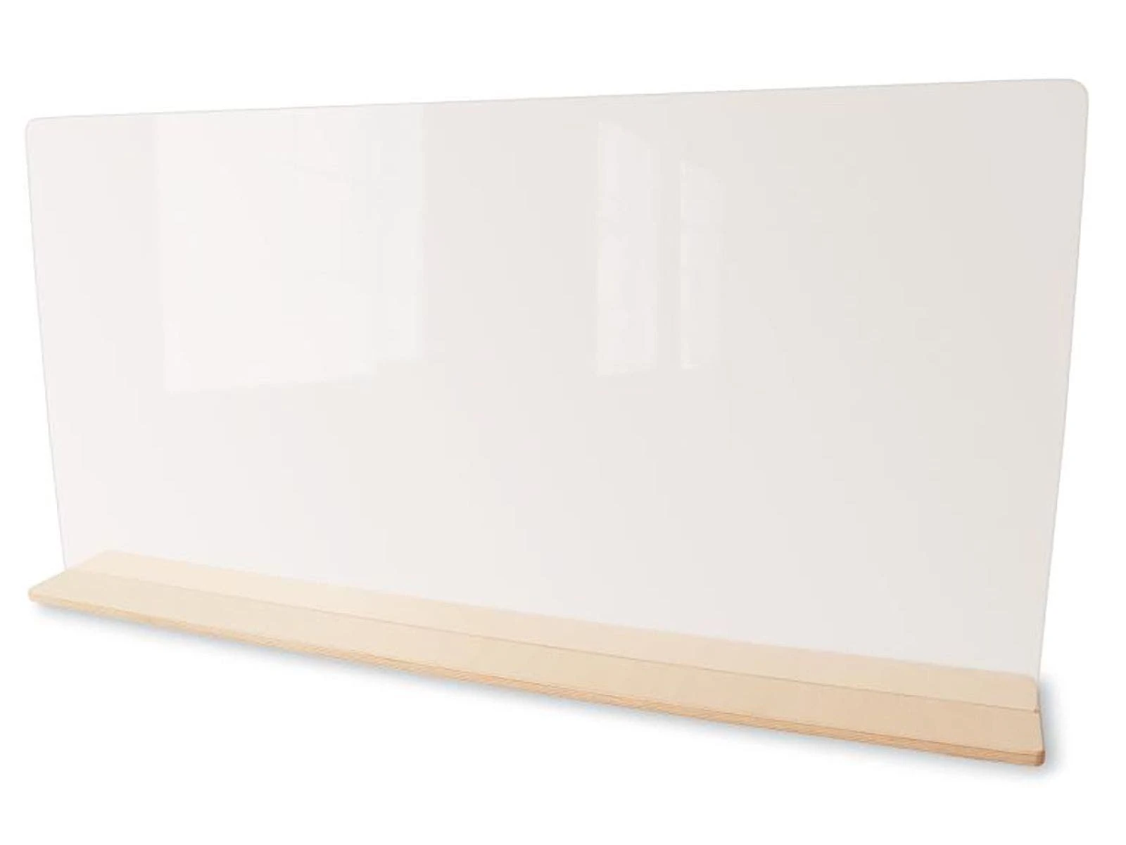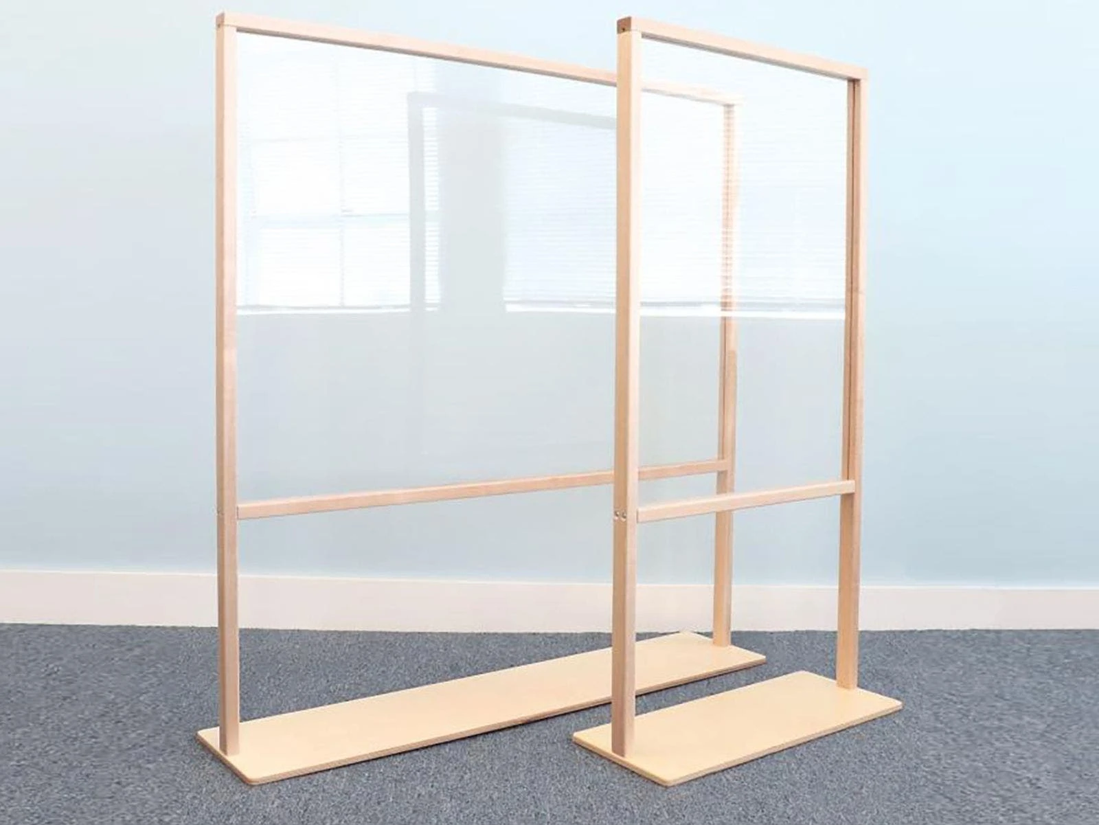 Made of 1/8” thick shatterproof acrylic, the clear dividers make it easy to see others throughout the room and safely encourage interaction between users. Tabletop partitions sit in a groove on a 15 mm thick birch plywood base for easy removal when cleaning. Floor Standing partitions feature a strong wooden frame and base for long-lasting institutional use. Smooth-sanded corners and edges enhance safety.