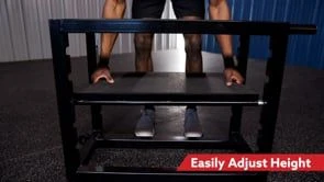 Accommodate and challenge everyone in your class or strength team with 5 heights from 7” to 23”H in 4” increments. Easily slide the platform out and place in the next slot for quick adjustments when multiple users are training.