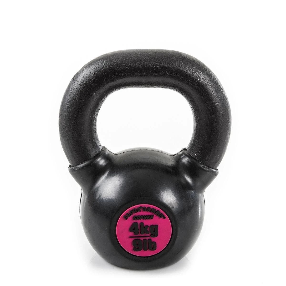 The high-tensile iron core of these bells makes them tremendously durable in any setting. Molded-in weight identifiers lets users know exactly which kettlebell they’re using. Weights are displayed in kilograms and pounds and are color-coded for even quicker selection.