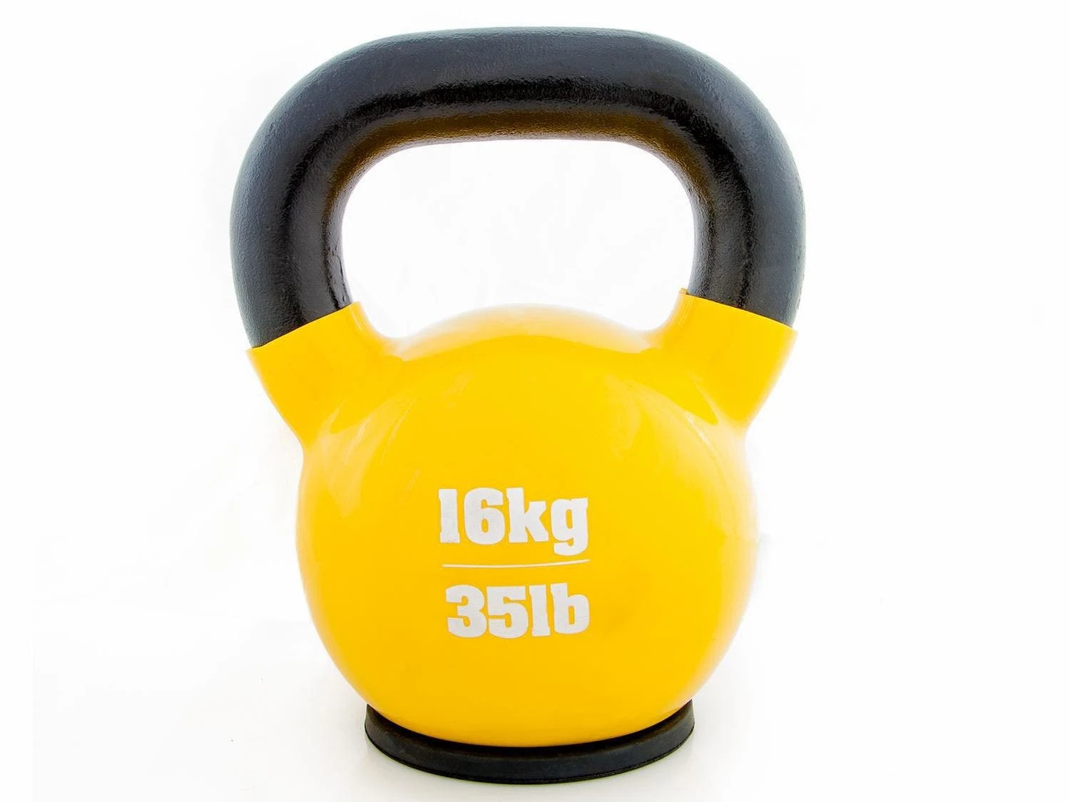 Coated with a protective vinyl covering and capped on the bottom with a flat rubber shield, these kettlebells won’t mar your floor or cause damage when dropped. They’re also supremely resilient against wear and tear, ensuring both the equipment and your facilities will say safe and unharmed for years to come. These coated bells are non-intimidating, encouraging students to incorporate them into their routine bodyweight exercises.
