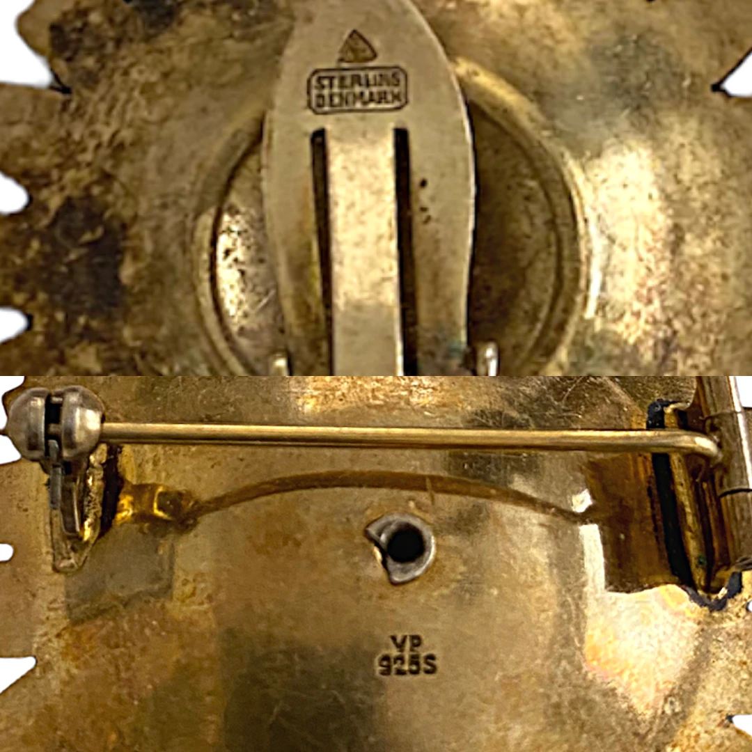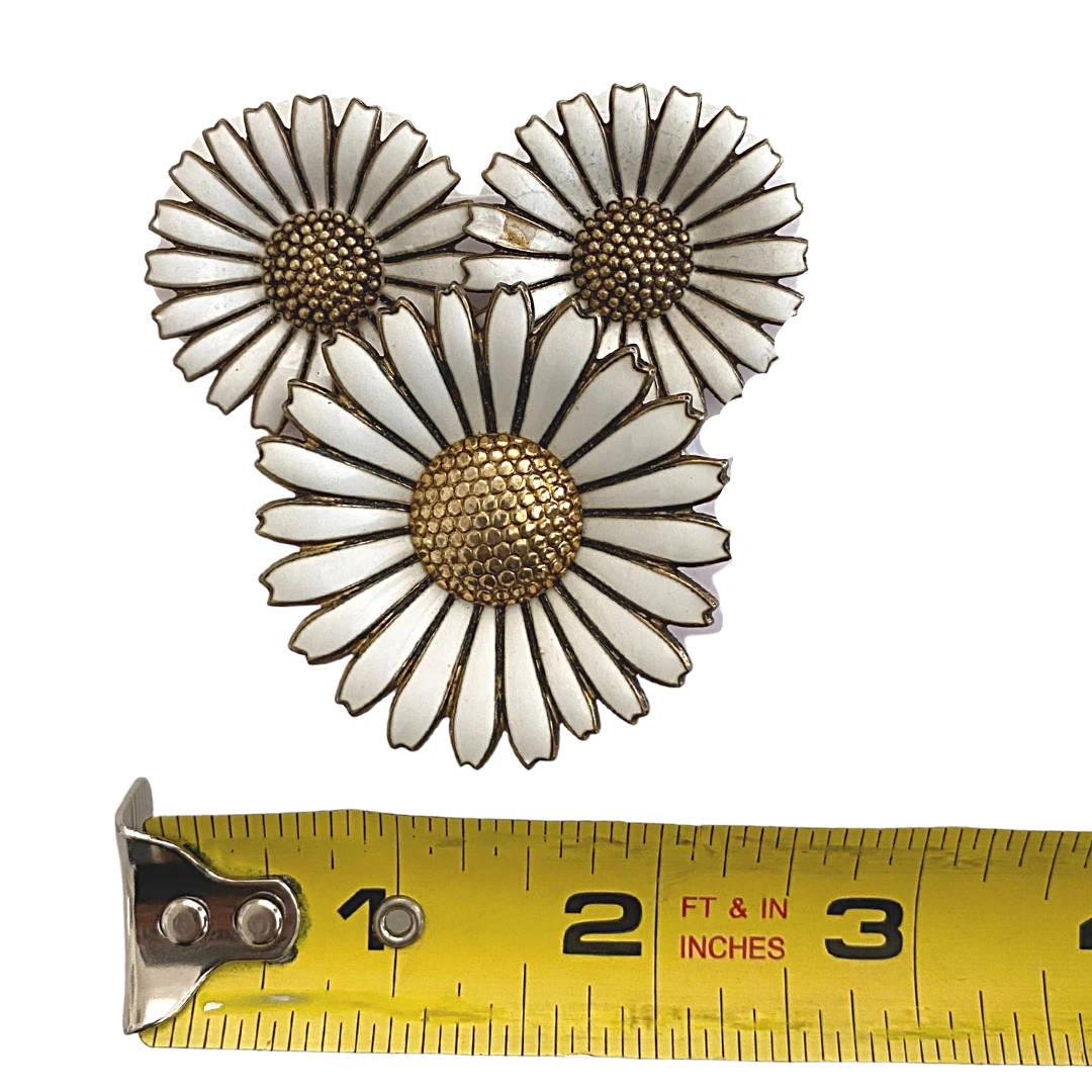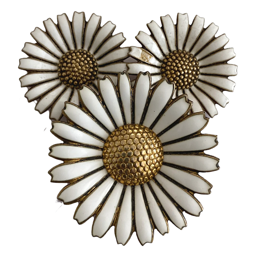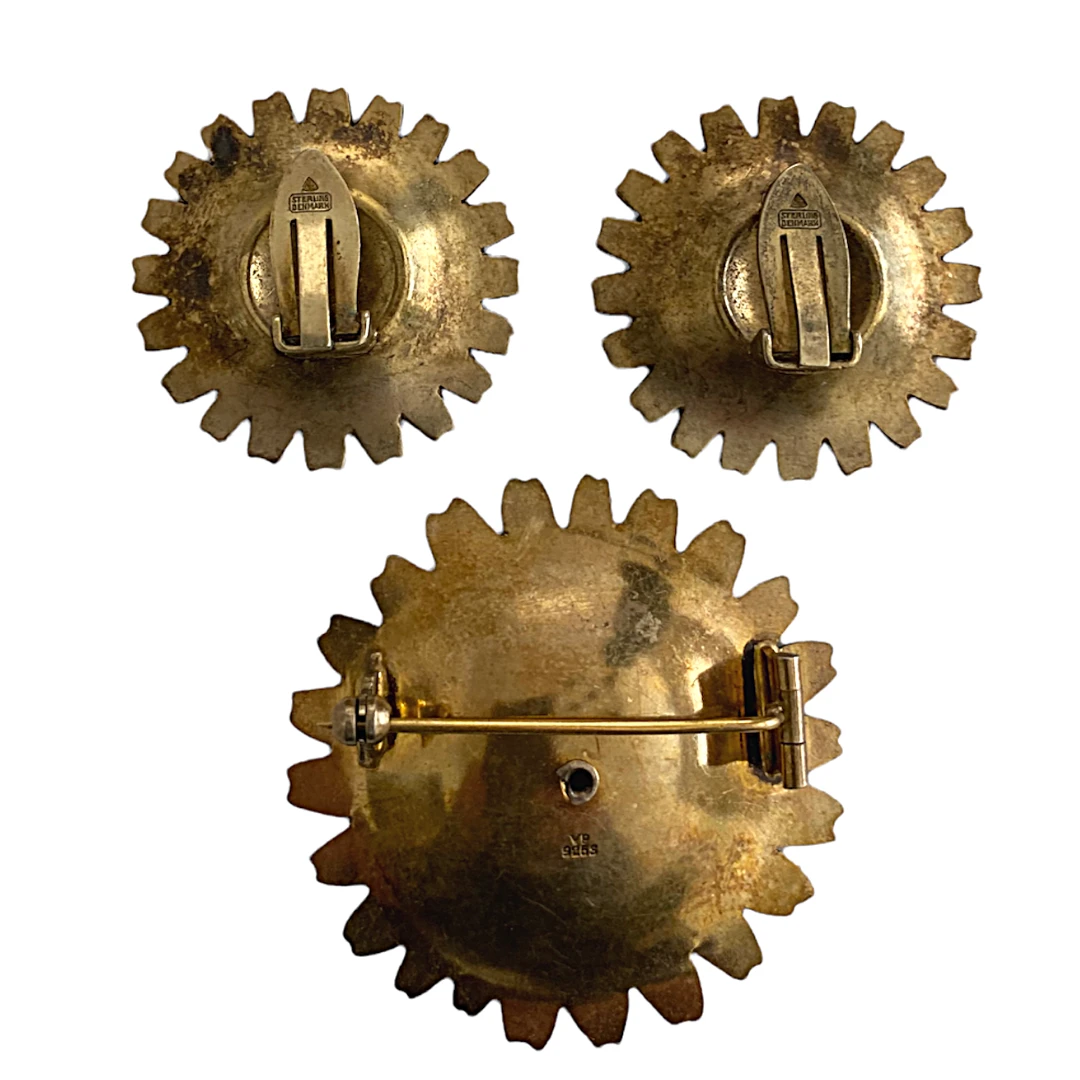 Anton Michelsen Royal Danish Enamal Sterling Daisy Clip On Earrings & Brooch Jewelry Set