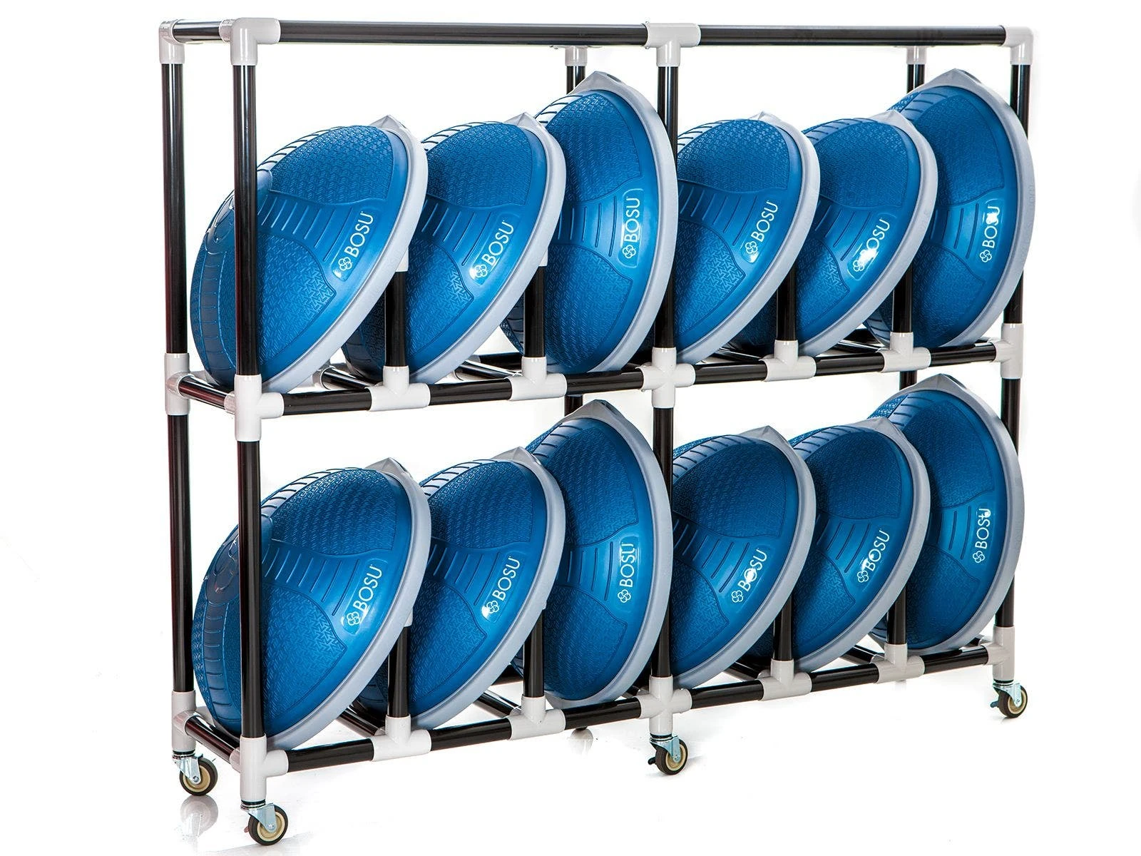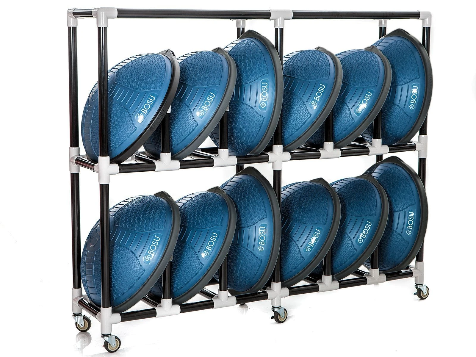 Make your balance training routine easier than ever with BOSUÂ Trainers and our one-of-a-kind BOSUÂ storage cart in convenient packs! Each cart features custom slots for up to 12 trainers and a shorter height for quick access and organized storage. Spend more time on training, less time on prep!