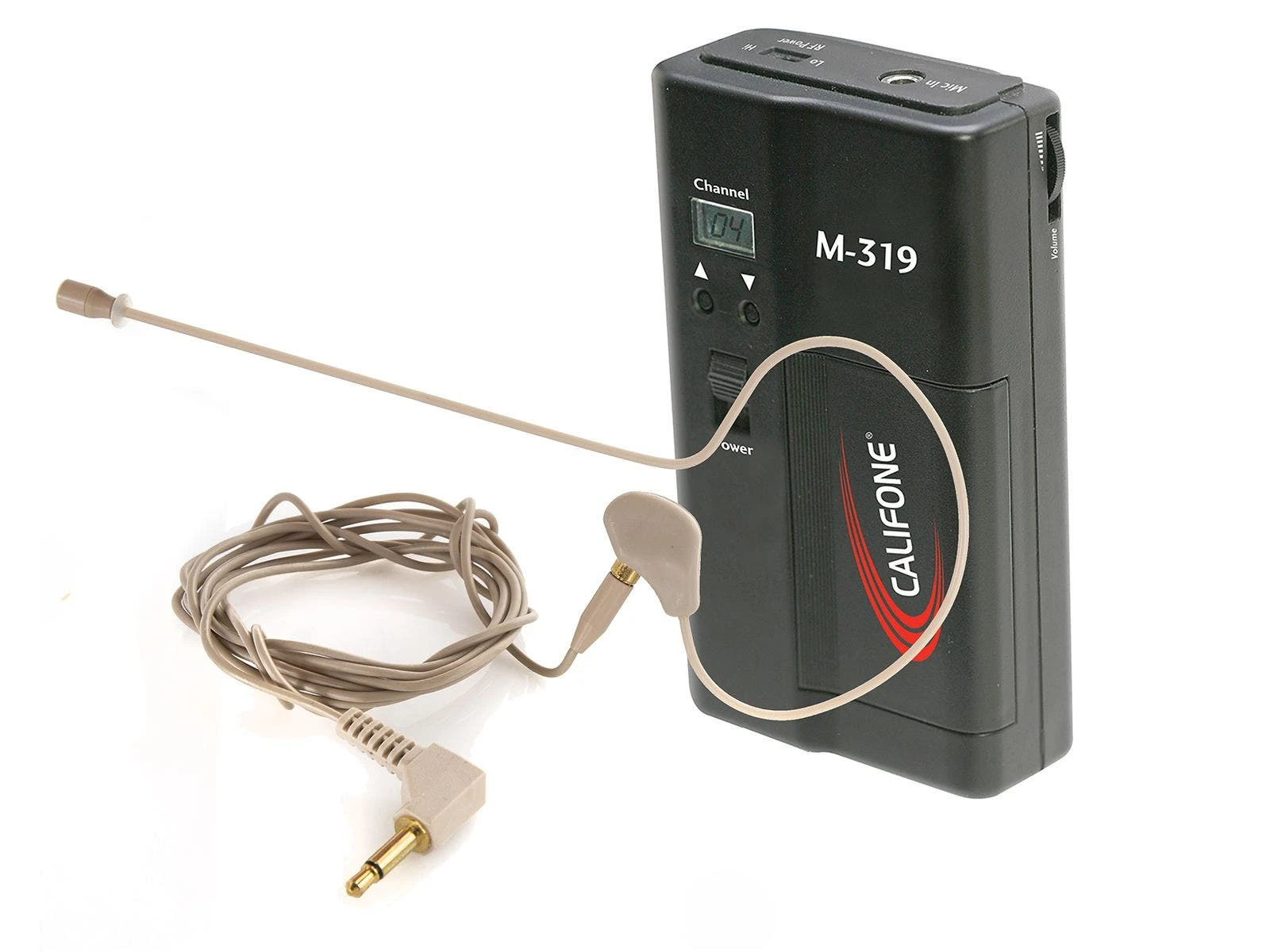 All three include a versatile beltpack transmitter that searches 16 channels and features two power settings to switch range from 50-150’. Transmitter is compatible only with Califone PA systems. Mics are compatible with any system with a 3.5 mm audio input.