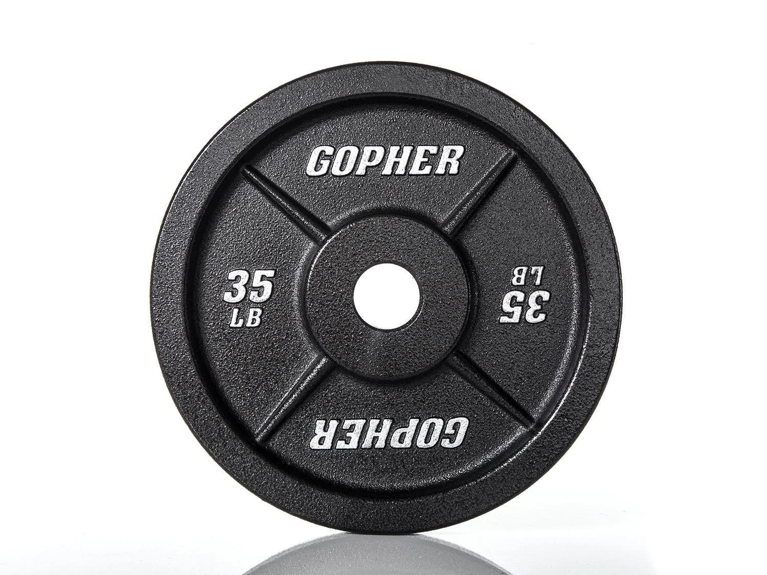 Cast-iron plates are thinner than a bumper plate, so there’s more room for more weight as users progress. A thick lip around the circumference allows users users to grasp and hold onto the plate while loading or unloading the bar.