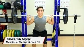 Add chains to your bar to fully engage your muscles at the top of your lift! Chains provide a smooth progression to higher resistance as each link is lifted off of the ground. This increases explosiveness—and results!