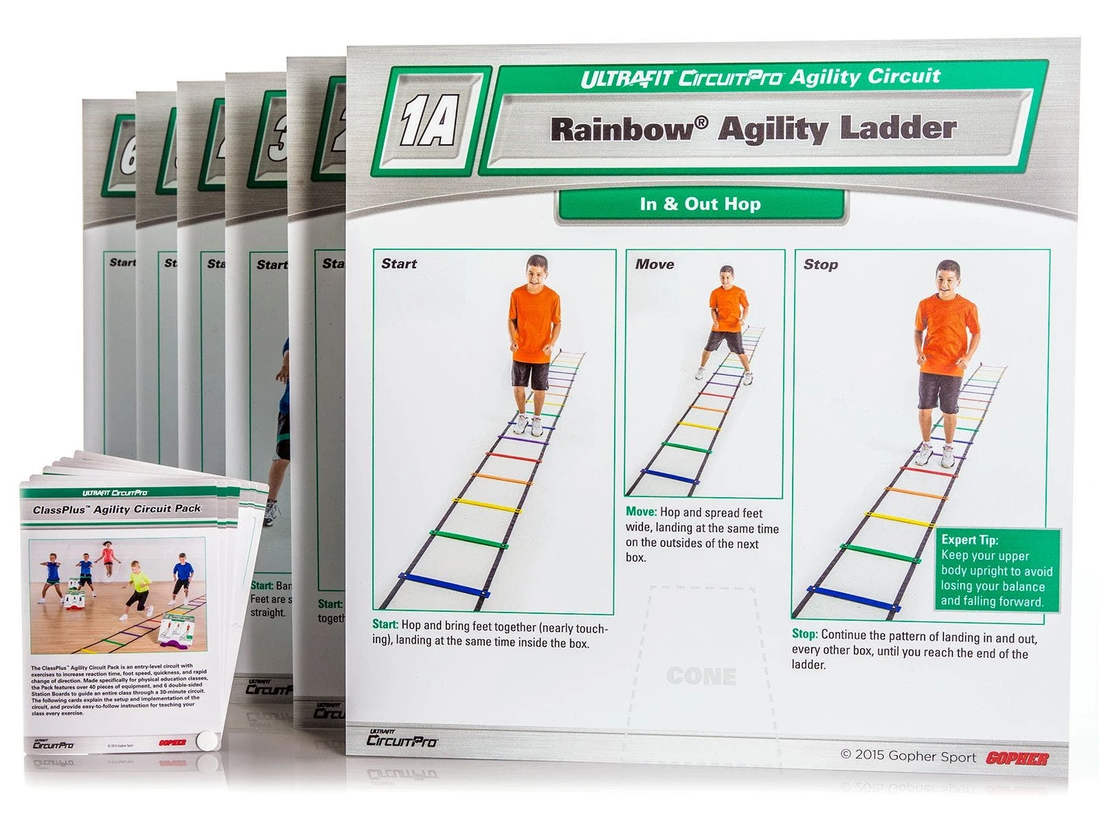 Durable station boards include full-color photos and step-by-step instruction for 12 exercises that help students increase their reaction time, quickness, and ability to rapidly change direction. Students can use the boards to guide themselves through each station in an agility circuit, allowing teachers to provide attention and extra instruction as needed. The 18″L x 18″W boards are made of 1″ thick reinforced plastic that withstands consistent use.