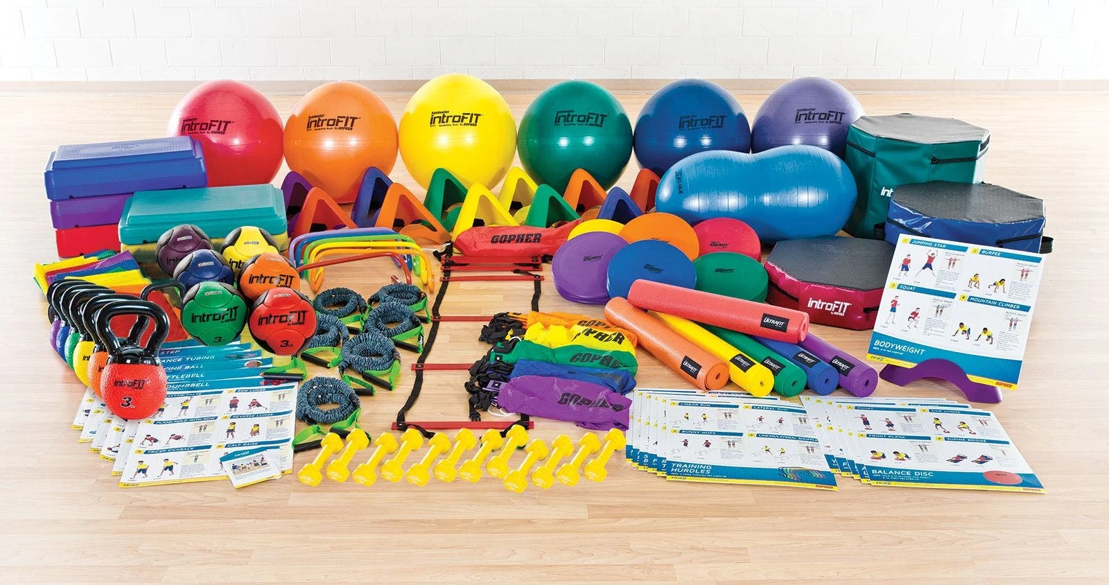 All of the individual items included within this pack are designed specifically for elementary school fitness programs. Thanks to lighter weights, softer materials, and clear instruction cards, the intimidation factor is removed, encouraging students to get familiar with fitness. With the fear of abrasive or heavy equipment gone, the focus shifts to proper form and appropriate equipment usage, which sets the tone for future fitness involvement.