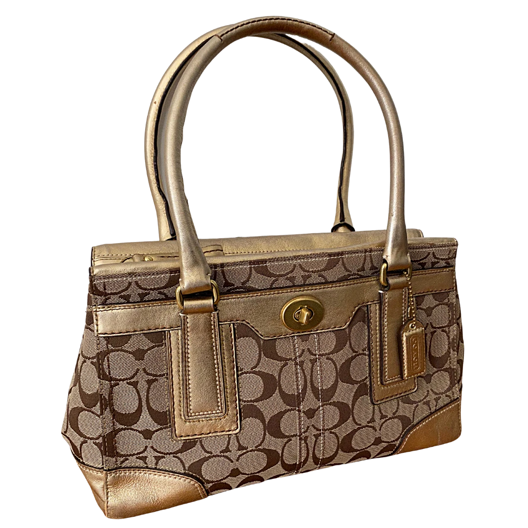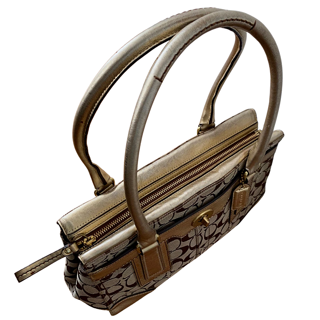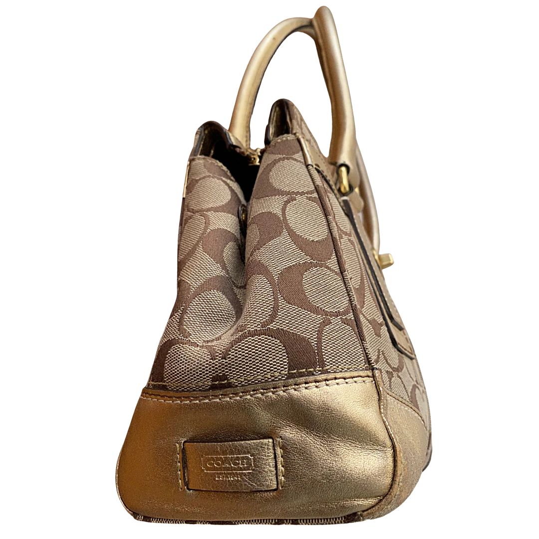 COACH Signature Zip Top Gold Metallic Trim Purse 11062