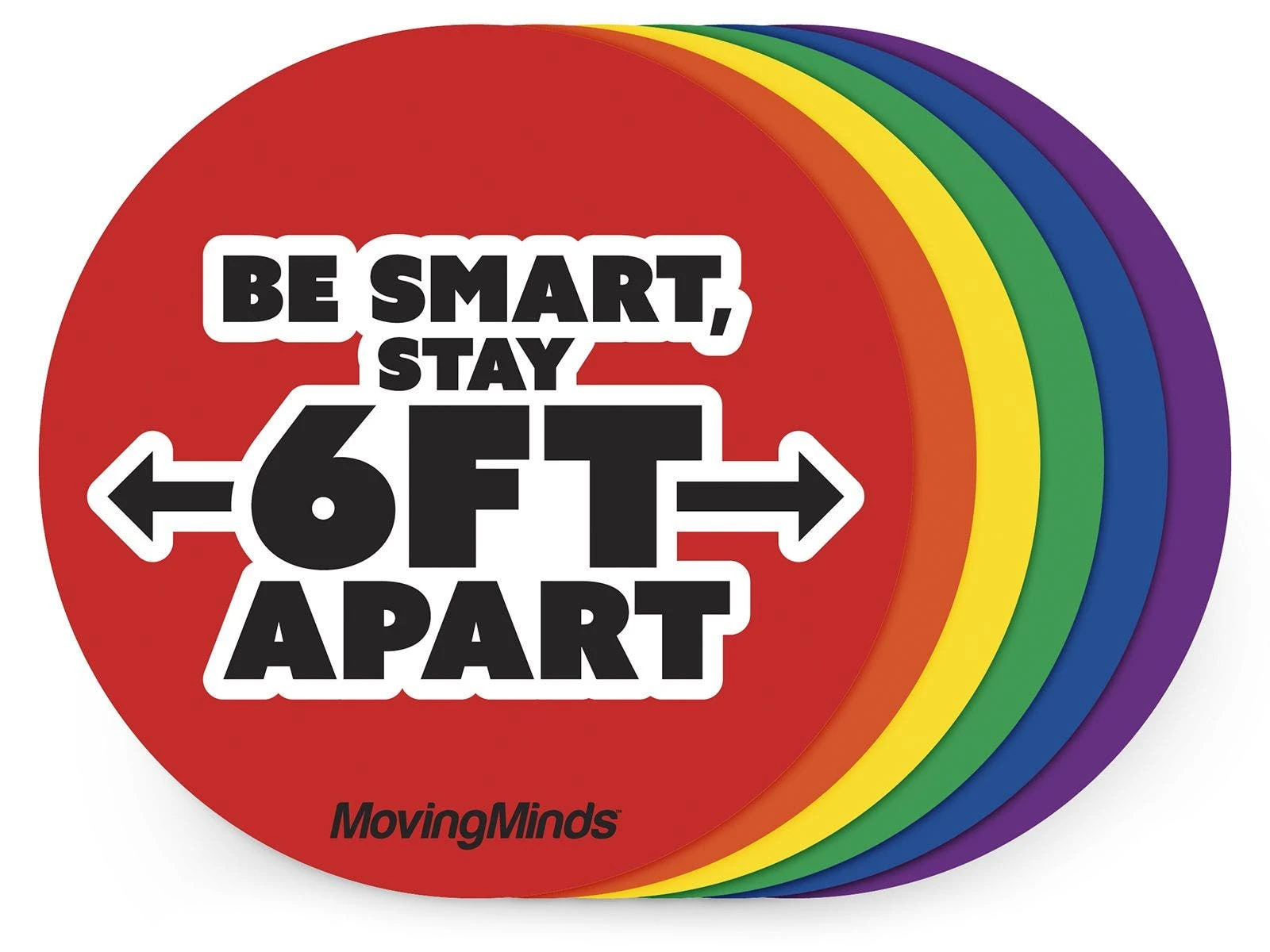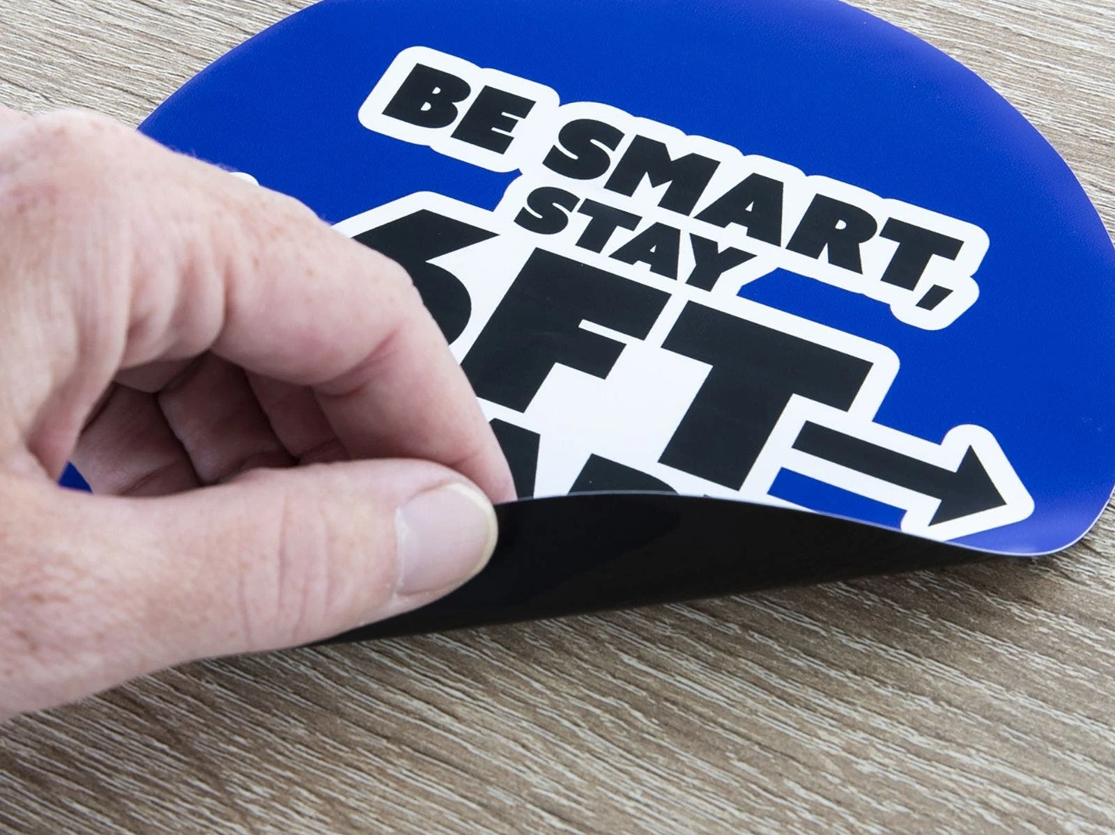 Easy-peel PET plastic film clings to smooth, non-porous surfaces such as desks, tables, wall, windows, whiteboard, and doors without leaving a residue. Stickers can be removed and reused, making it easy to move them wherever they are needed most. 6″ dia stickers withstand both high and low temperatures, making them ideal for indoors and occasional outdoor use. If stickers become dirty, simply rinse and reapply them. Available in a Rainbow Set of 6 or individual blue.