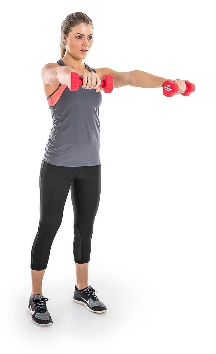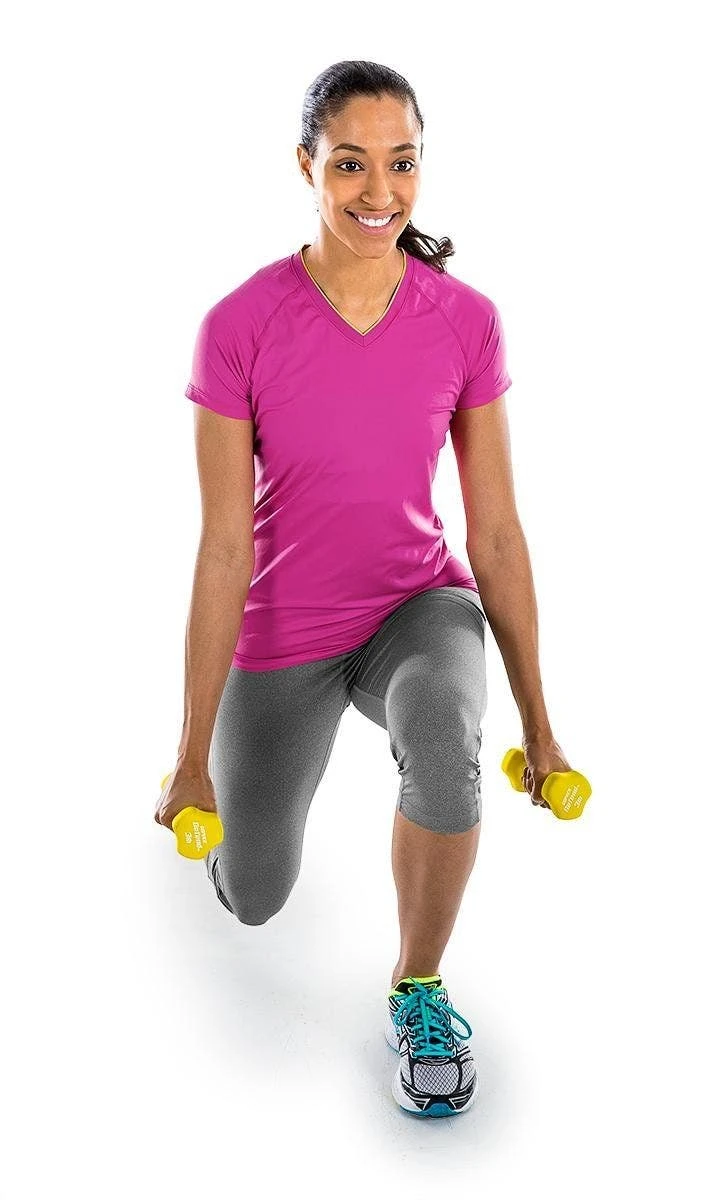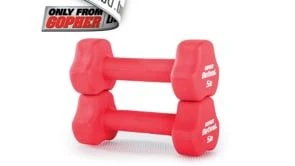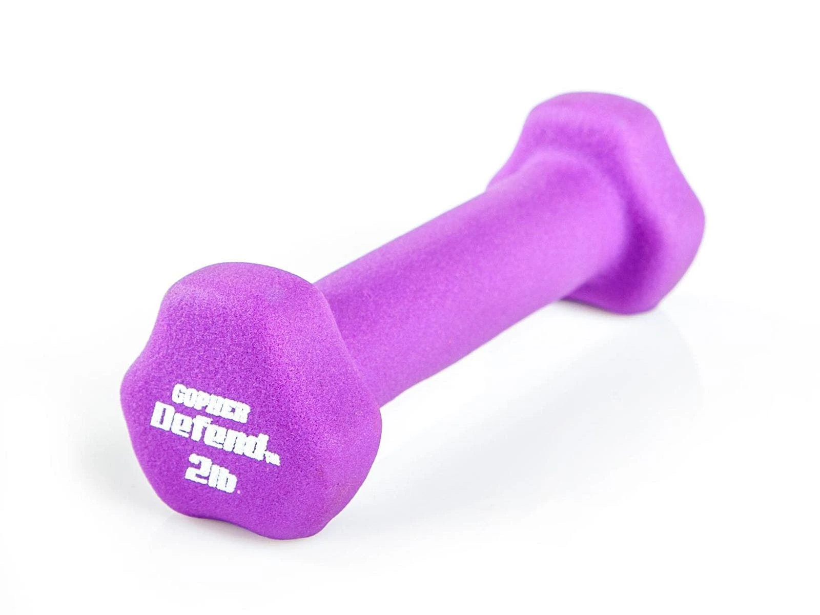 A unique 3-sided design ensures this stackable dumbbell will stay put wherever you set it down. Unlike traditional round dumbbells, they nest together, saving space and preventing clutter when stored. Vibrant purple color allows for easy weight identification and equipment organization. Available individually. 2 lb.