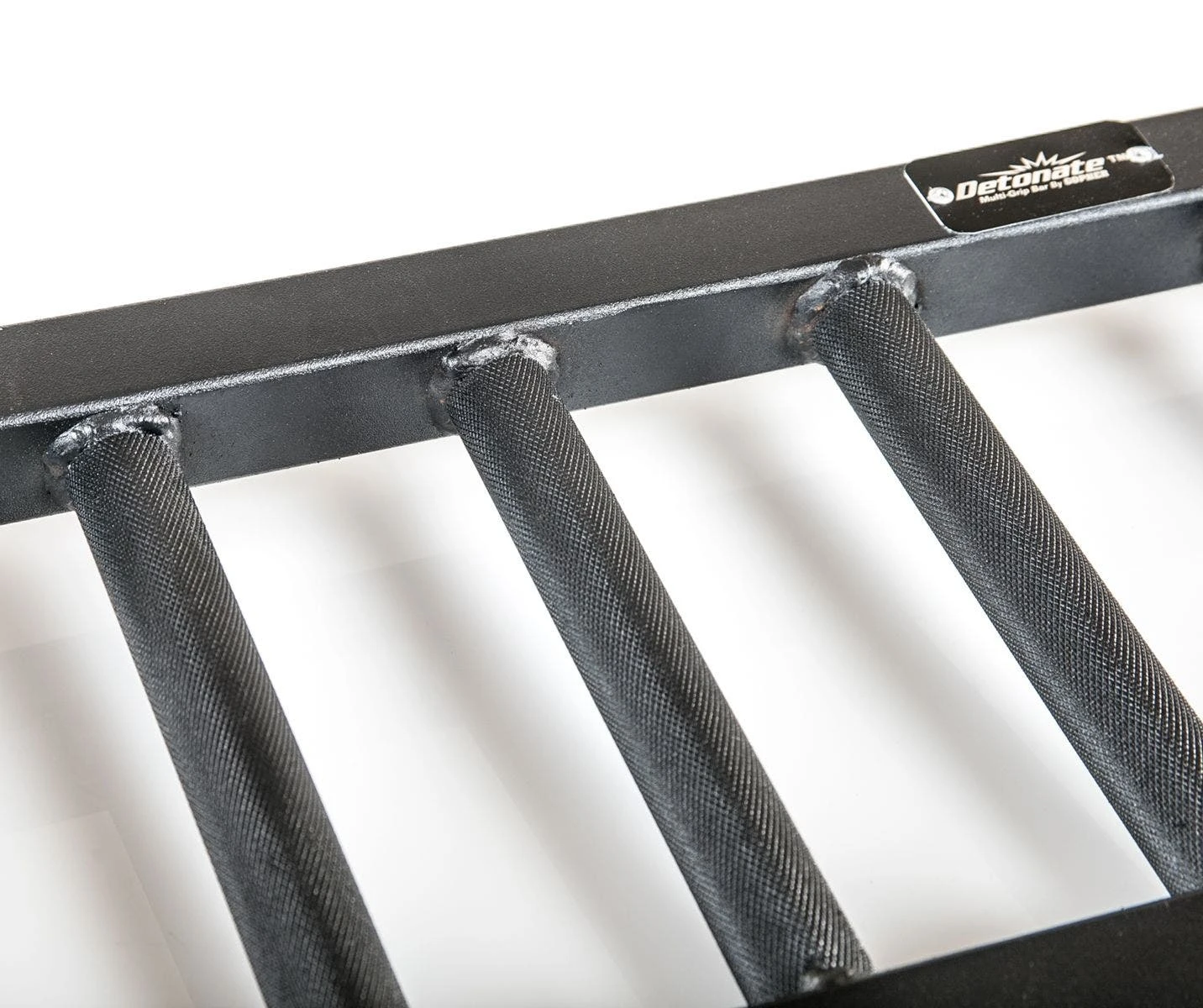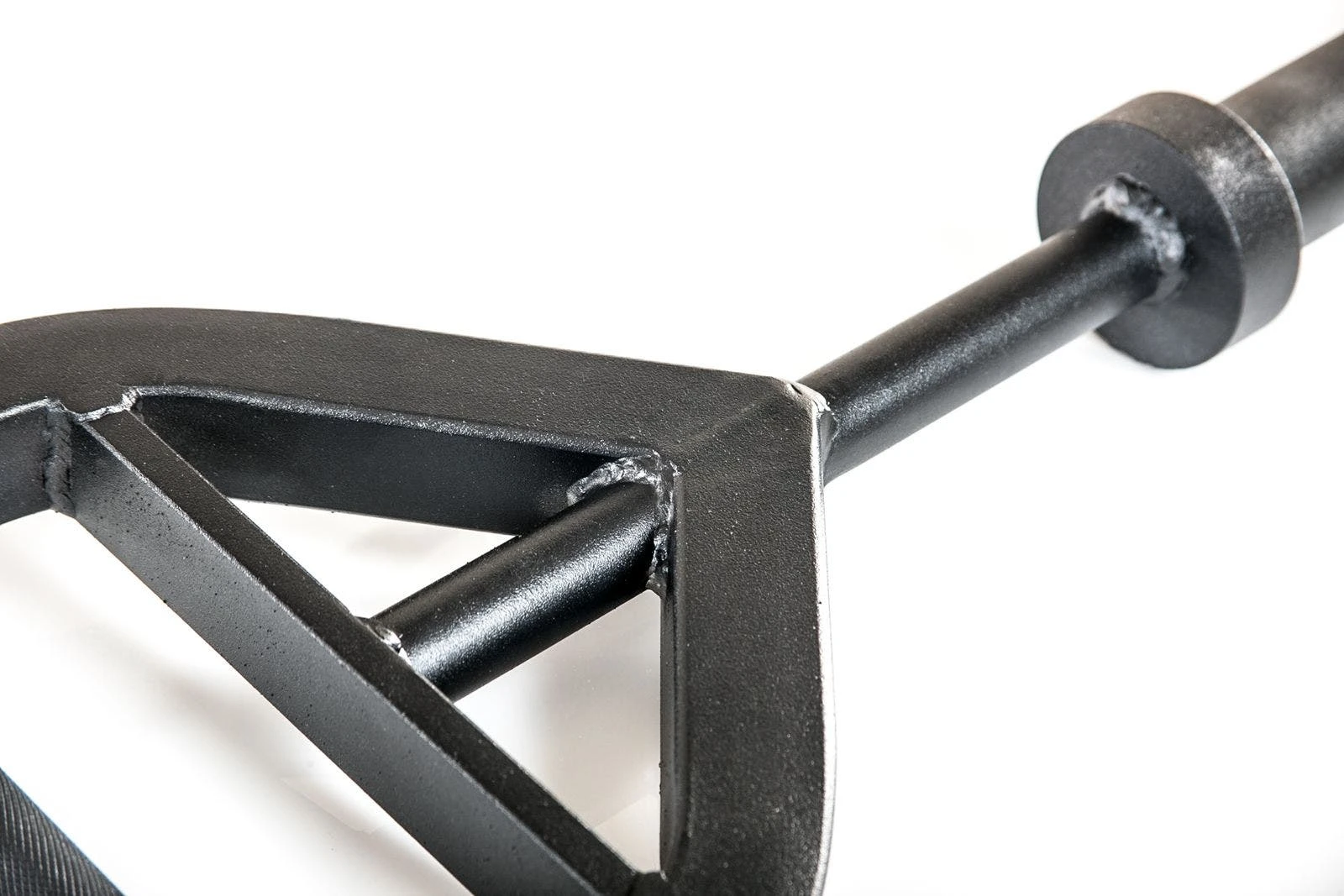 Due to the design of the bar, users are able to reduce shoulder stress by using a neutral grip instead of a pronated or supinated grip. Multiple anchor points help lifters target different muscle groups. Use the close grip handles to target and grow the triceps, and a wide grip to target pectoral muscles. Powder-coated black steel provides lasting durability. The bar is fully rackable on any standard squat or bench stand. Bar is 75”L x 11-1/2”W x 3”H; 52-1/2 lb.