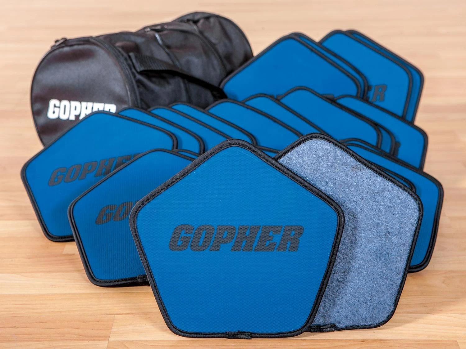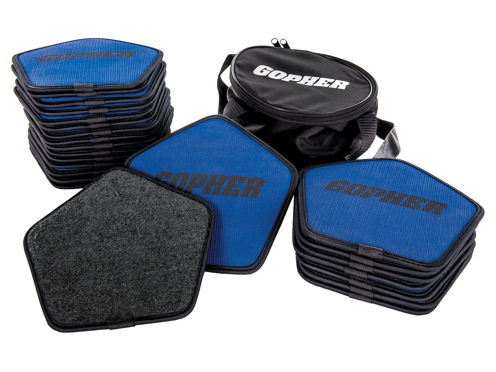 Grippy, textured top aids in keeping hands or feet in place. Each slider is 9”L x 9”W. Complete Sets includes 12 sliders and a storage bag for organization and easy transport. Available in Hardwood or Carpet Sliders.