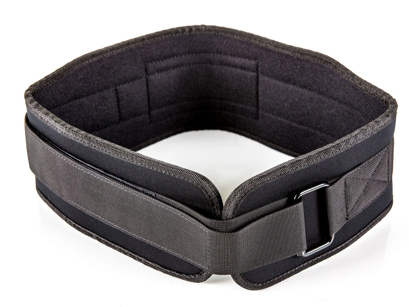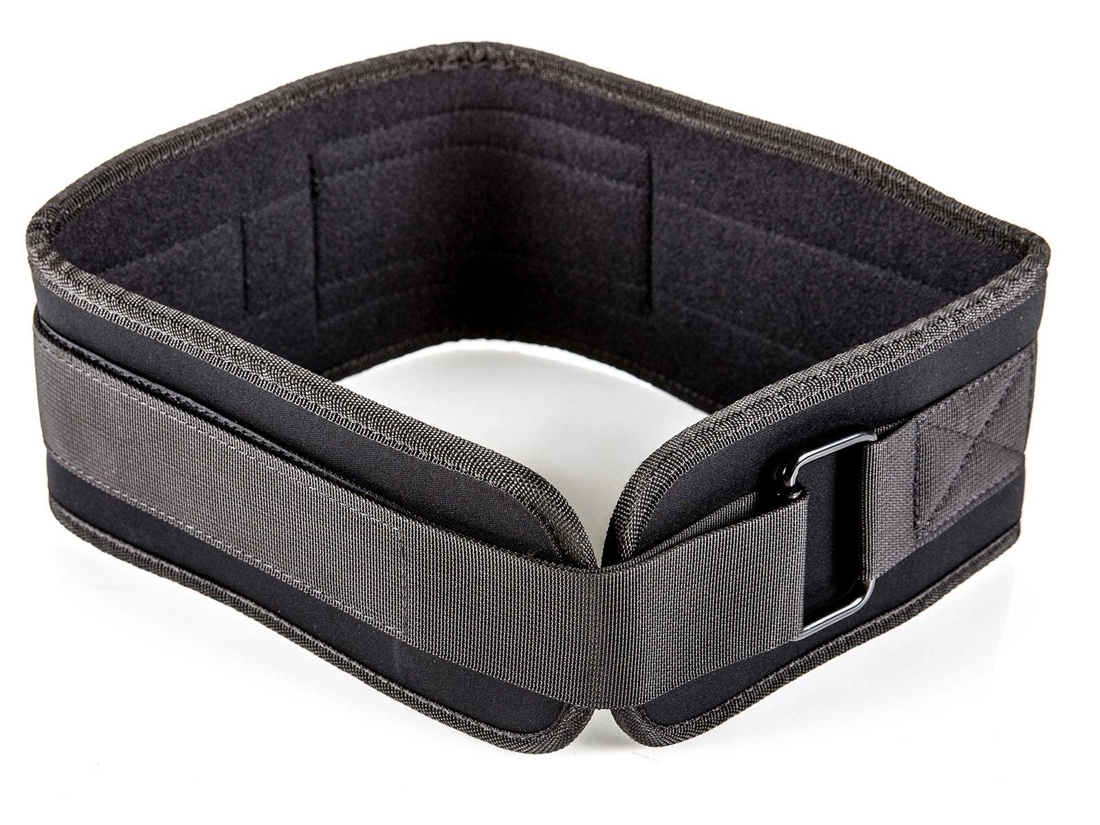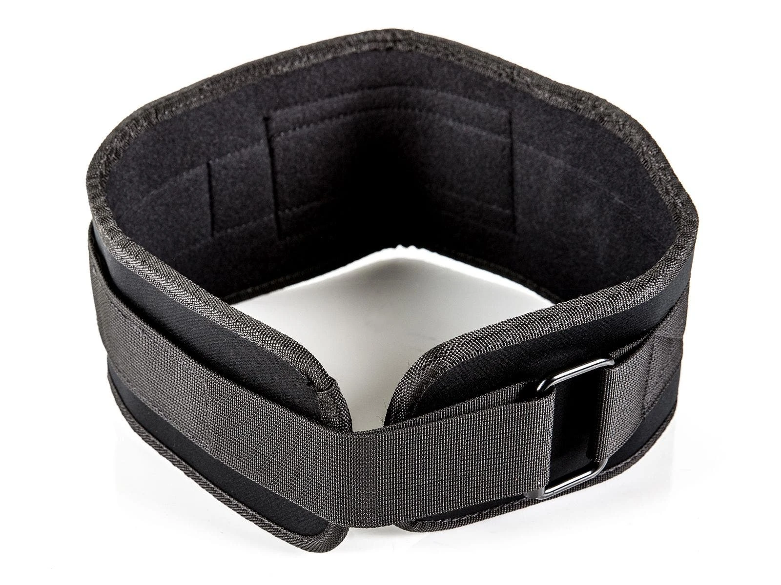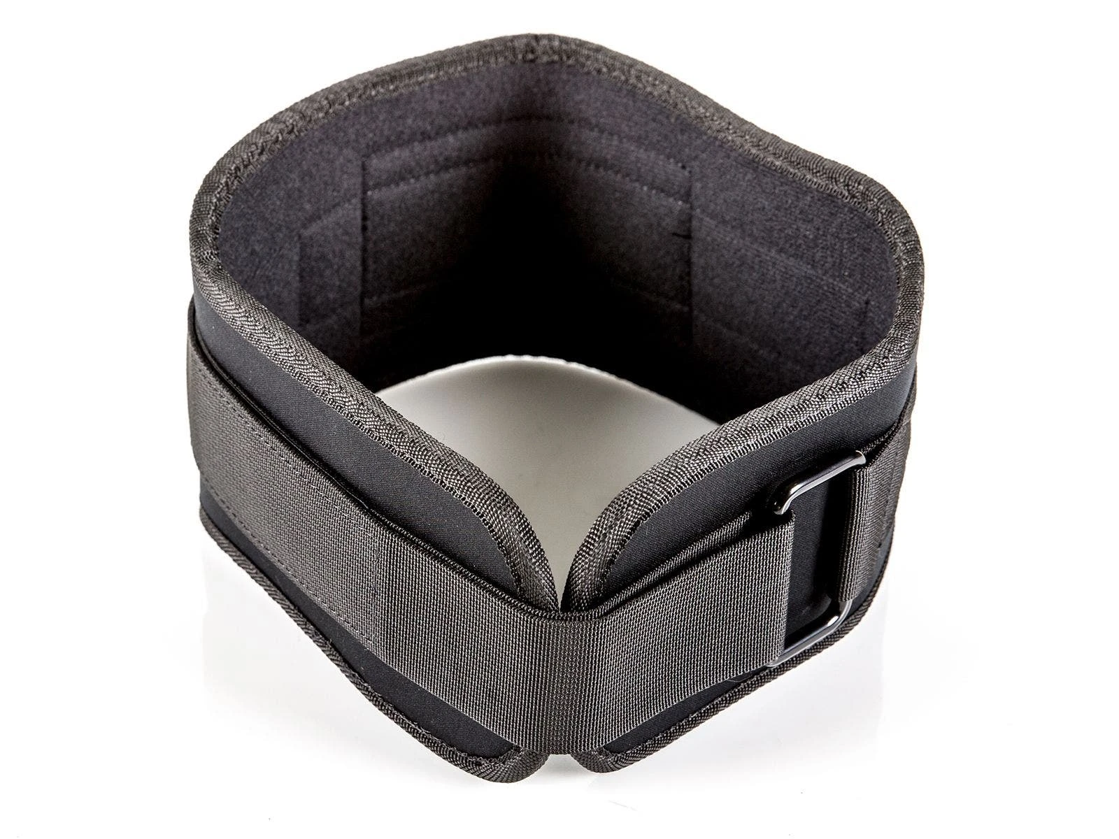 This padded 5″W nylon belt secures by cinching the hook-and-loop fastener strap through the steel buckle. It provides more flexible support for low back and abs. It conforms to the body thanks to a softer material compared to leather. Available in Small, Medium, Large, and X-Large.