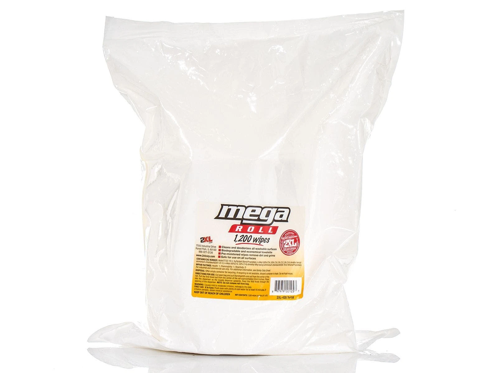 - Economical, non-alcohol MegaRoll wipes are biodegradable and eliminate 99.9% of common germs on all surfaces. 8”L x 8”W.