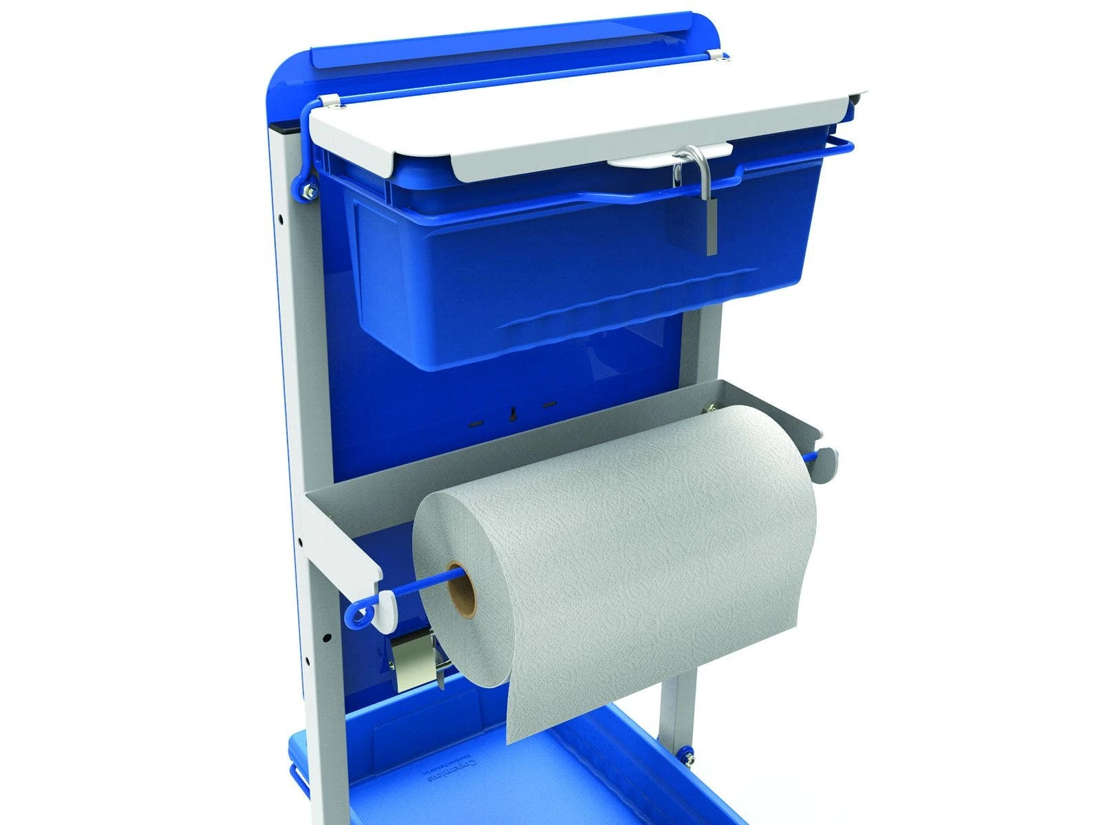 - Single Hand Sanitizer Stations. Compact mobile station is ideal for smaller rooms and hallways. Both stations include a steel cart with locking casters and a drip tray. Premium station also includes a magnetic board, paper towel dispenser, small open tub for storage, and child lock feature for dispensers (sold separately). 17″L x 24″W x 51″H. Standard is 18 lb, Premium is 25 lb.