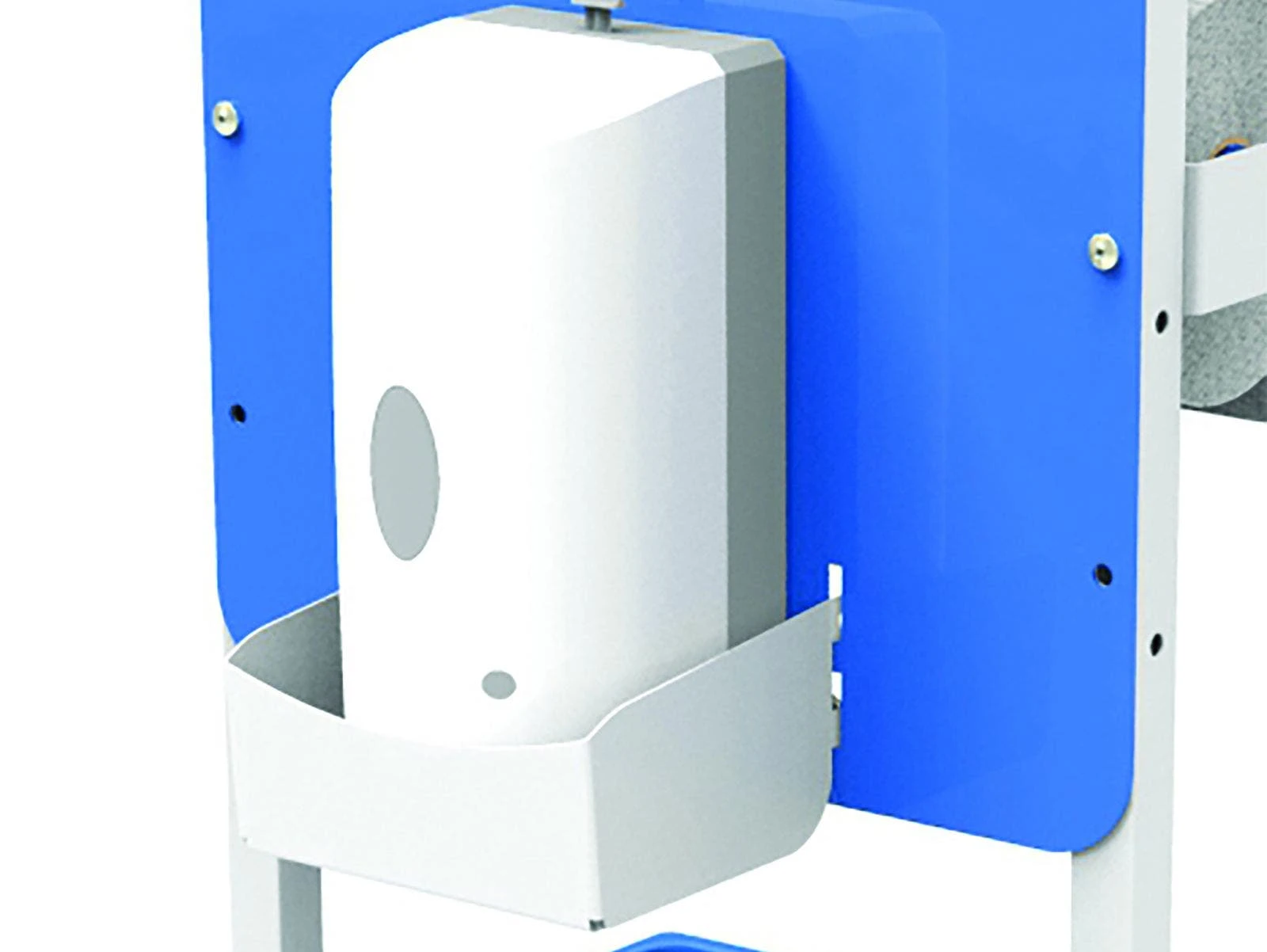 - Wall Mount Hand Sanitizer Dispenser. An attached drip tray catches any extra drops of liquid or gel sanitizer. Move the tray up and lock in place with a padlock (not included) to prevent unauthorized use. Mount the no-touch, automatic dispenser on mobile carts, stands, or any wall to create a convenient hand sanitizing station. Includes a power adapter. Holds up to 32 oz of sanitizer. 5″L x 5″W x 10″H; 8 lb.