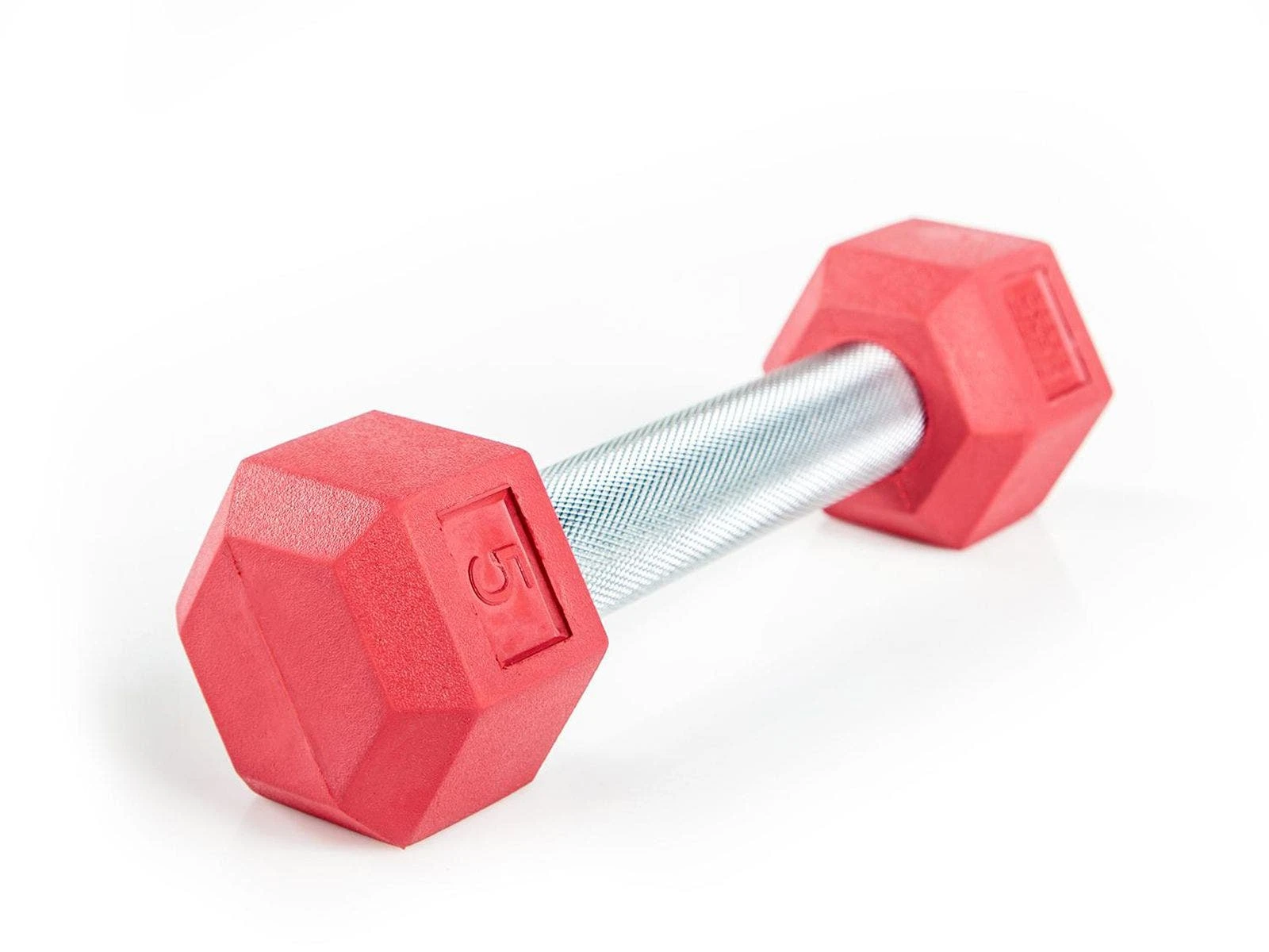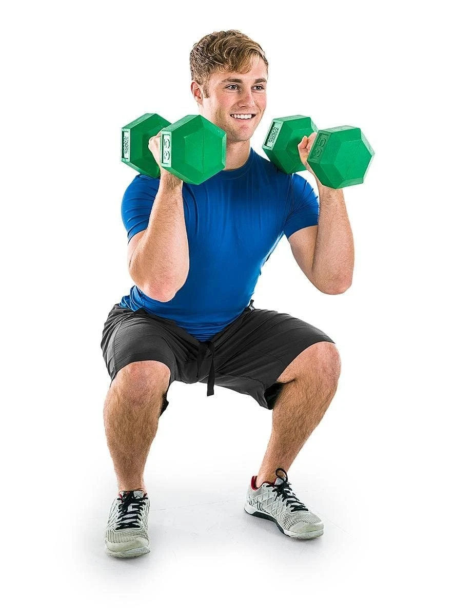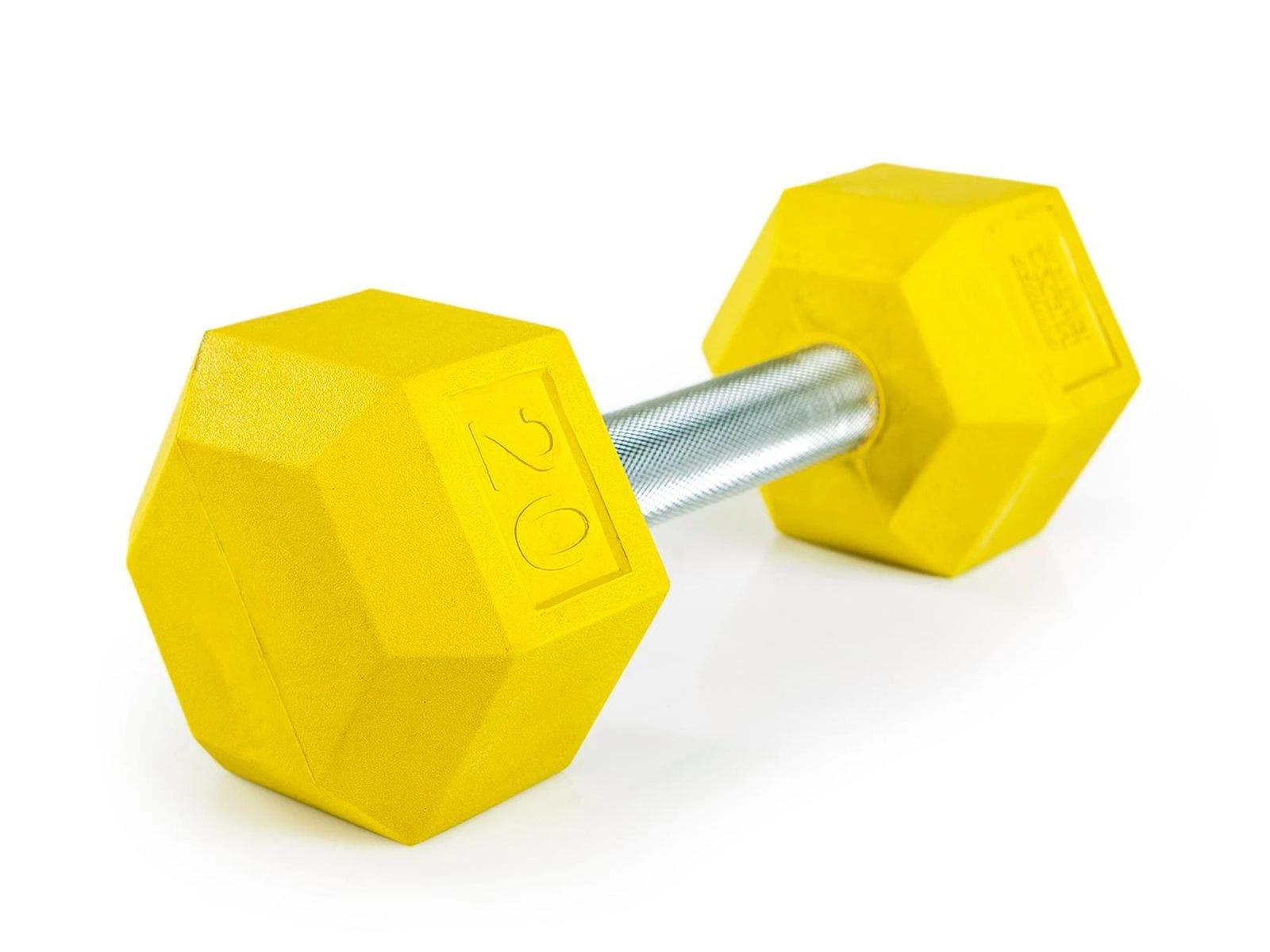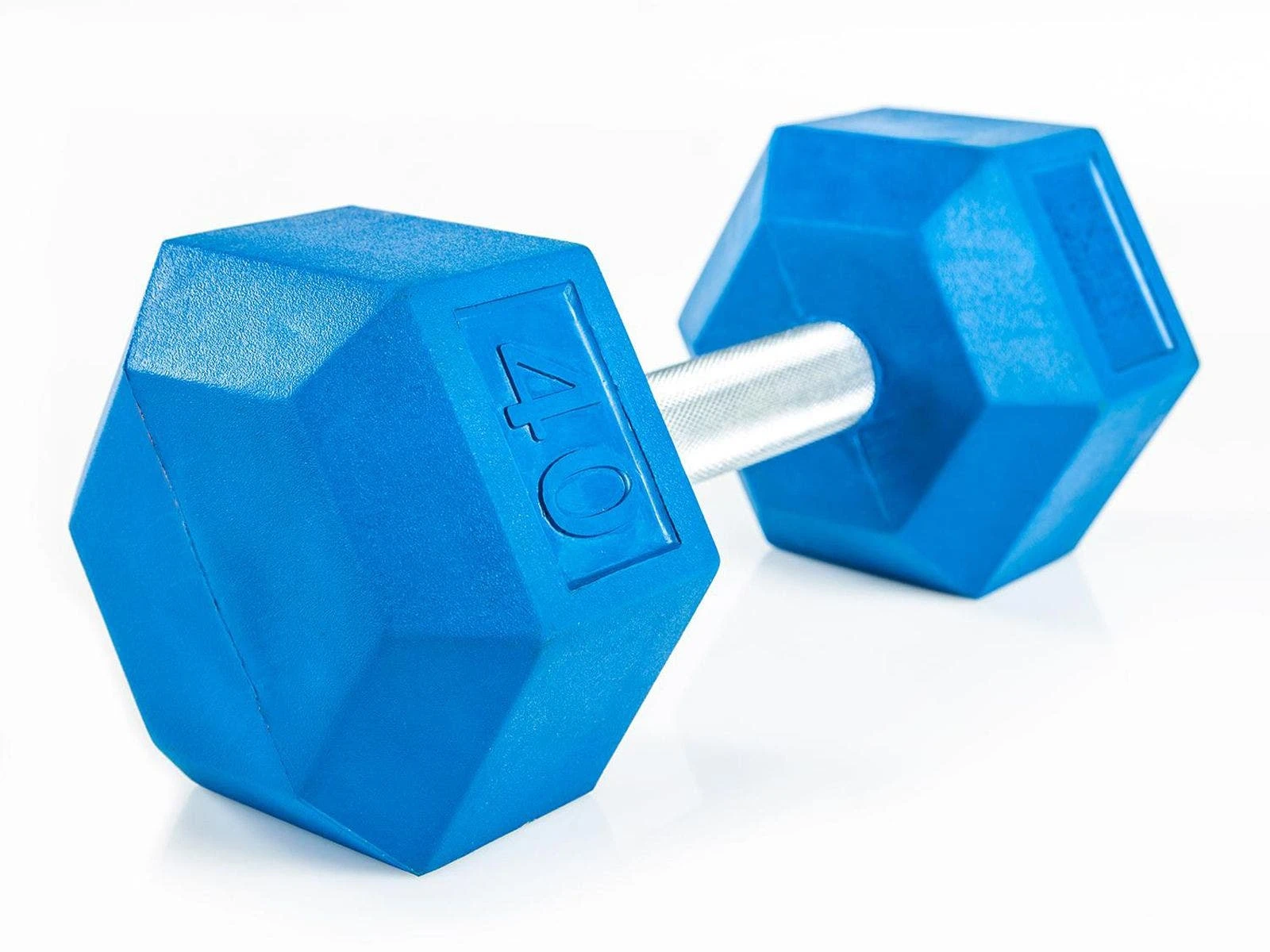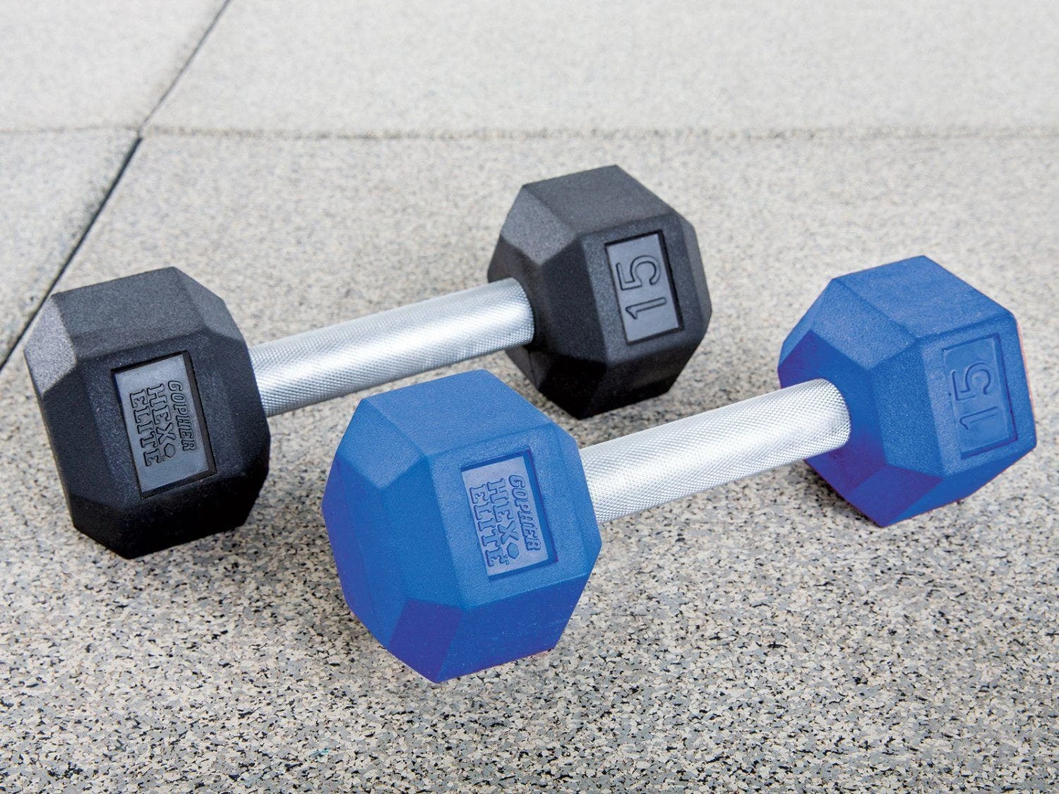 Satin hard chrome handles offer full knurling for the most secure grip, even when hands are sweaty. Textured grip extends all the way into dumbbell ends for increased handling and control during a wider variety of exercises. Bright colors identify each weight so users quickly select the appropriate dumbbell.