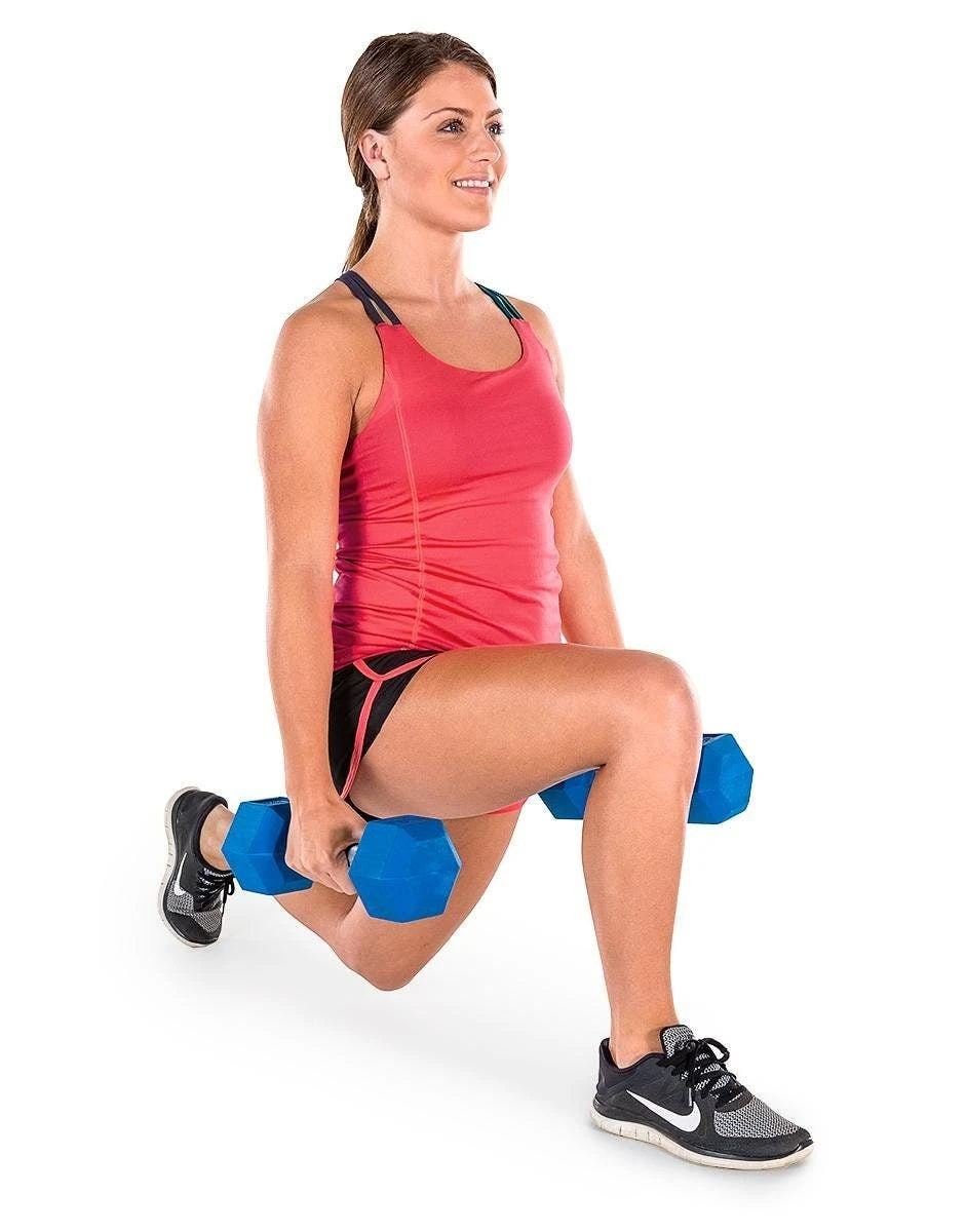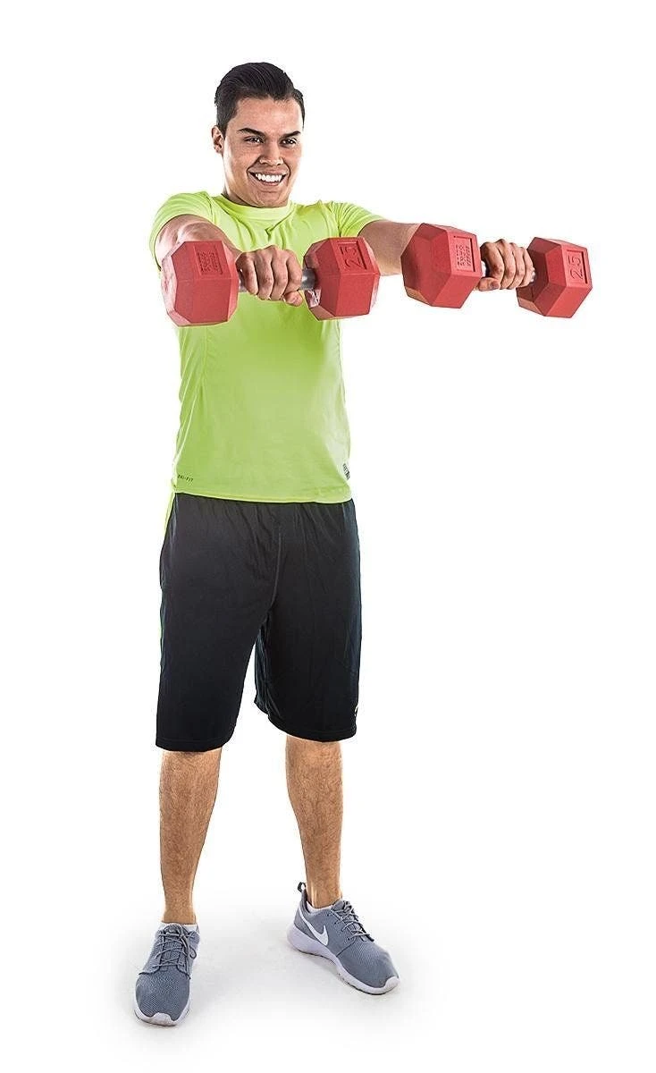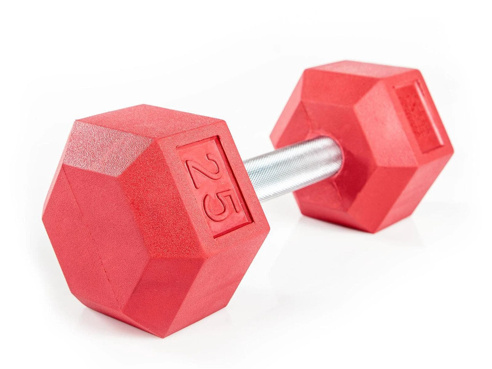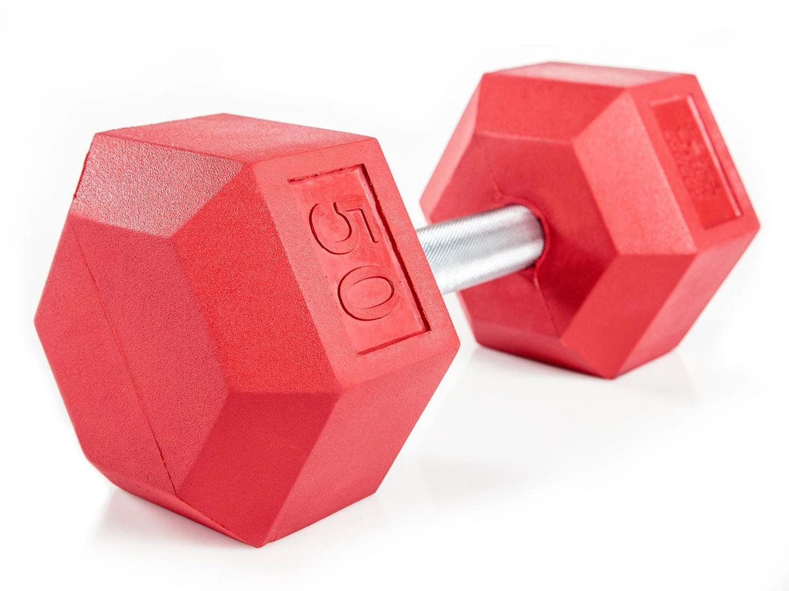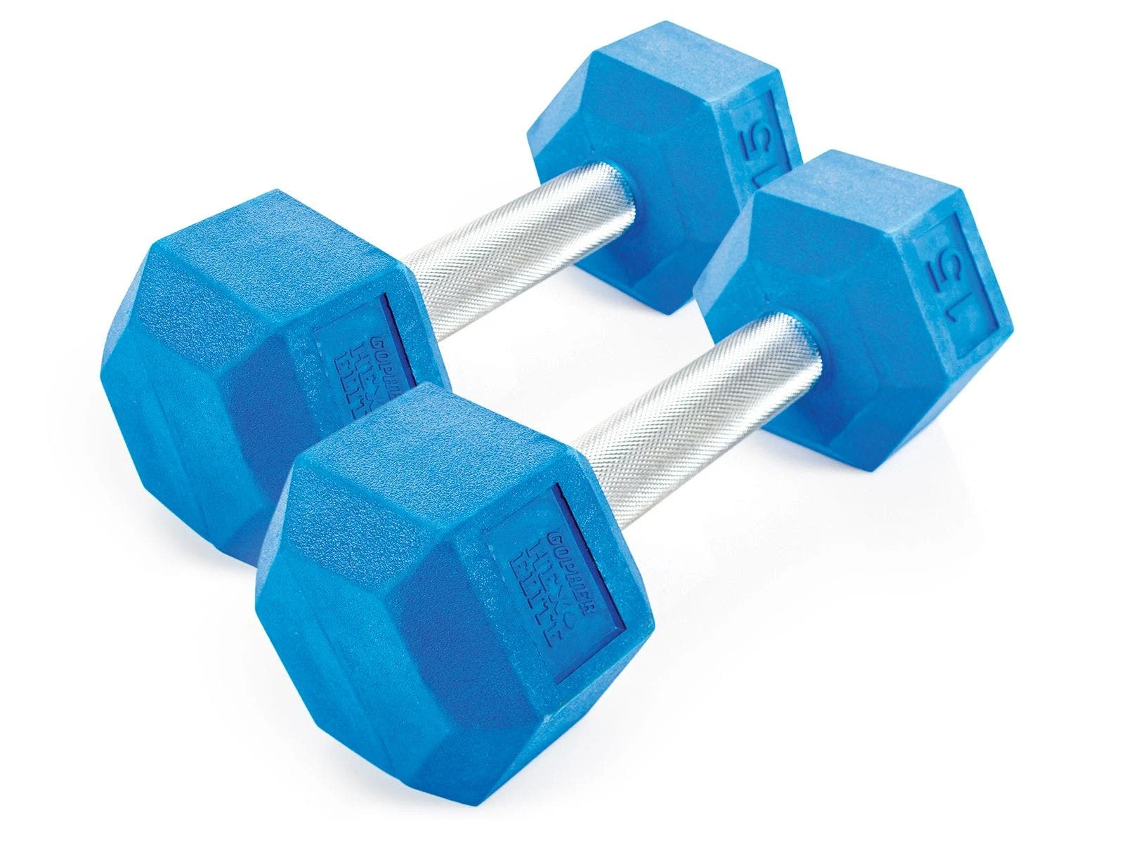 Satin hard chrome handles offer full knurling for the most secure grip, even when hands are sweaty. Textured grip extends all the way into dumbbell ends for increased handling and control during a wider variety of exercises. Bright colors identify each weight so users quickly select the appropriate dumbbell.