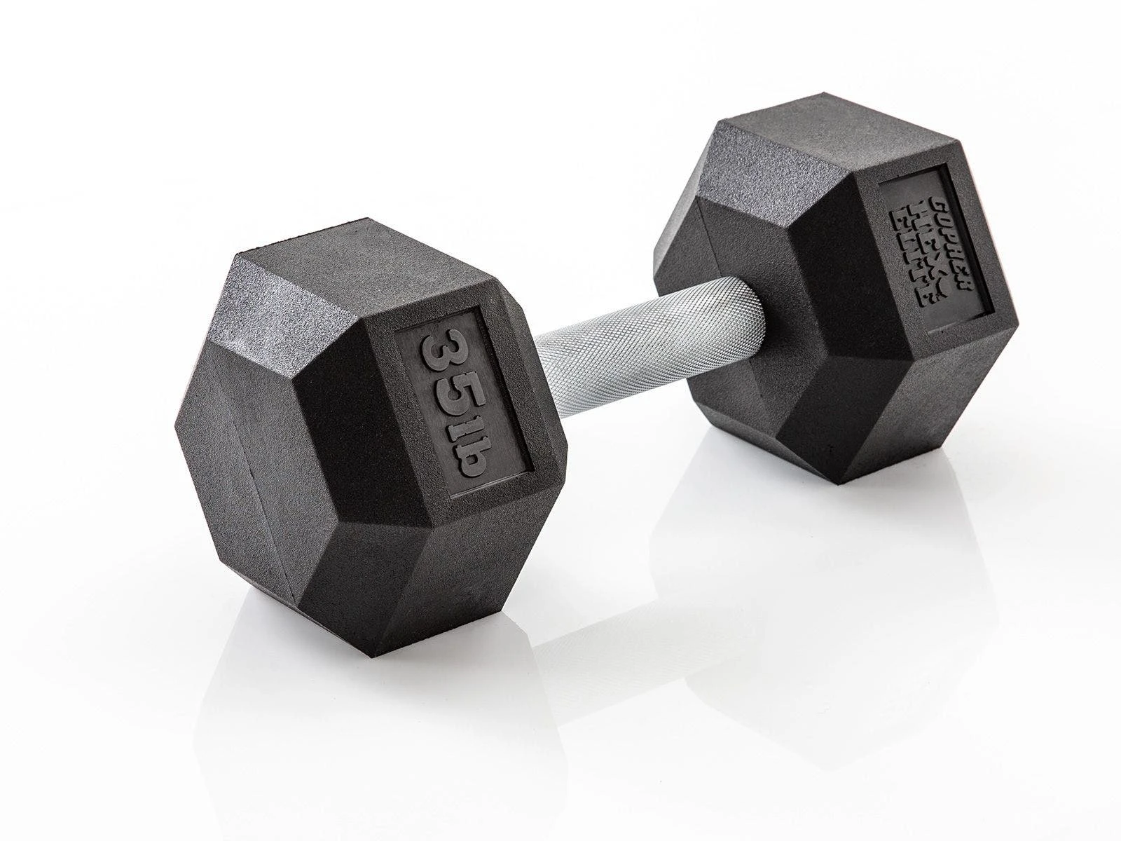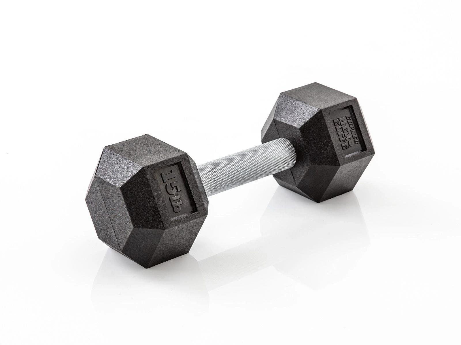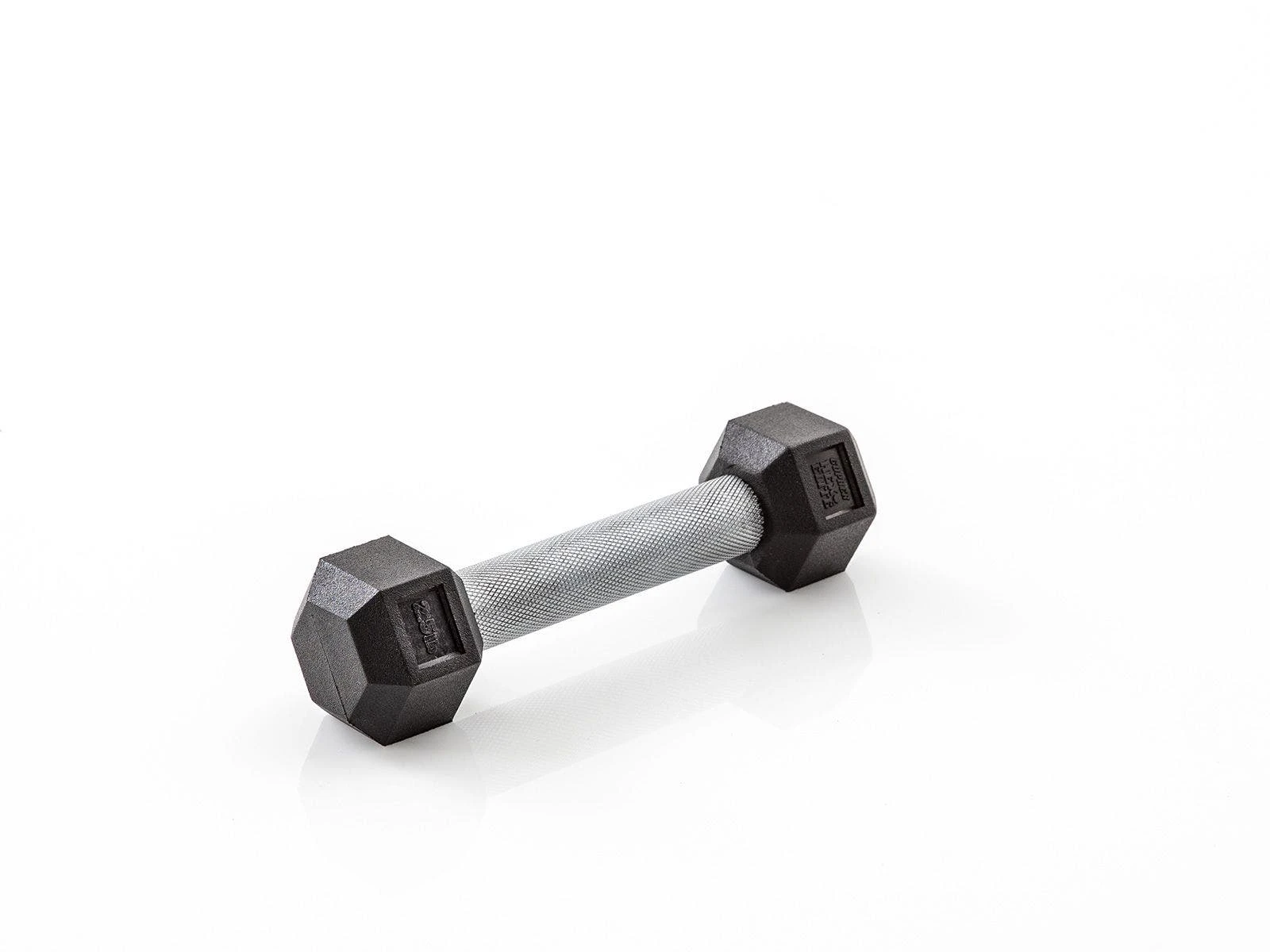 The exclusive, elite construction extends the handle into the ends and is secured with a small rod, ensuring years of use. Molded-in weights on the ends allow users to easily identify their ideal weight.