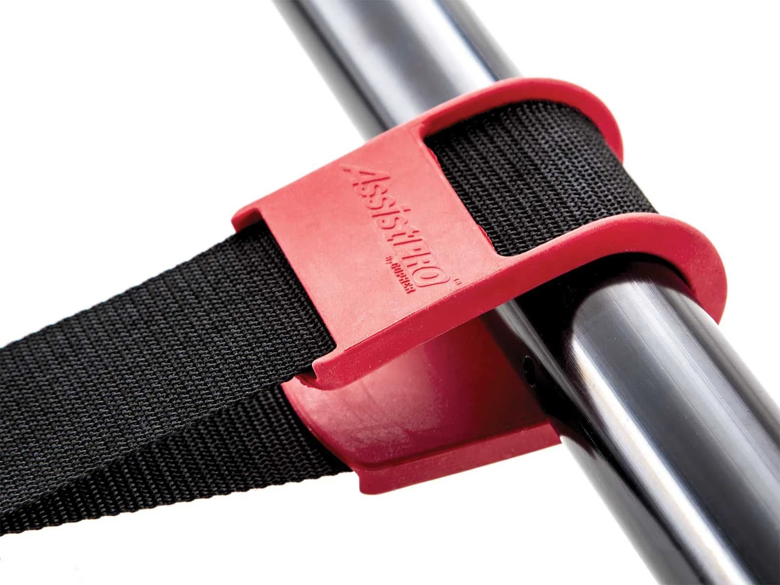 A hearty ABS plastic frame shaves weight and prevents cracking. It will flex, not break, under the weight of an errant step. Nonslip rubber cuffs keep nylon webbing in place during use. Disassembles for storage in included bag. 12-1/2’L x 3-1/2’W; 19 lb.
