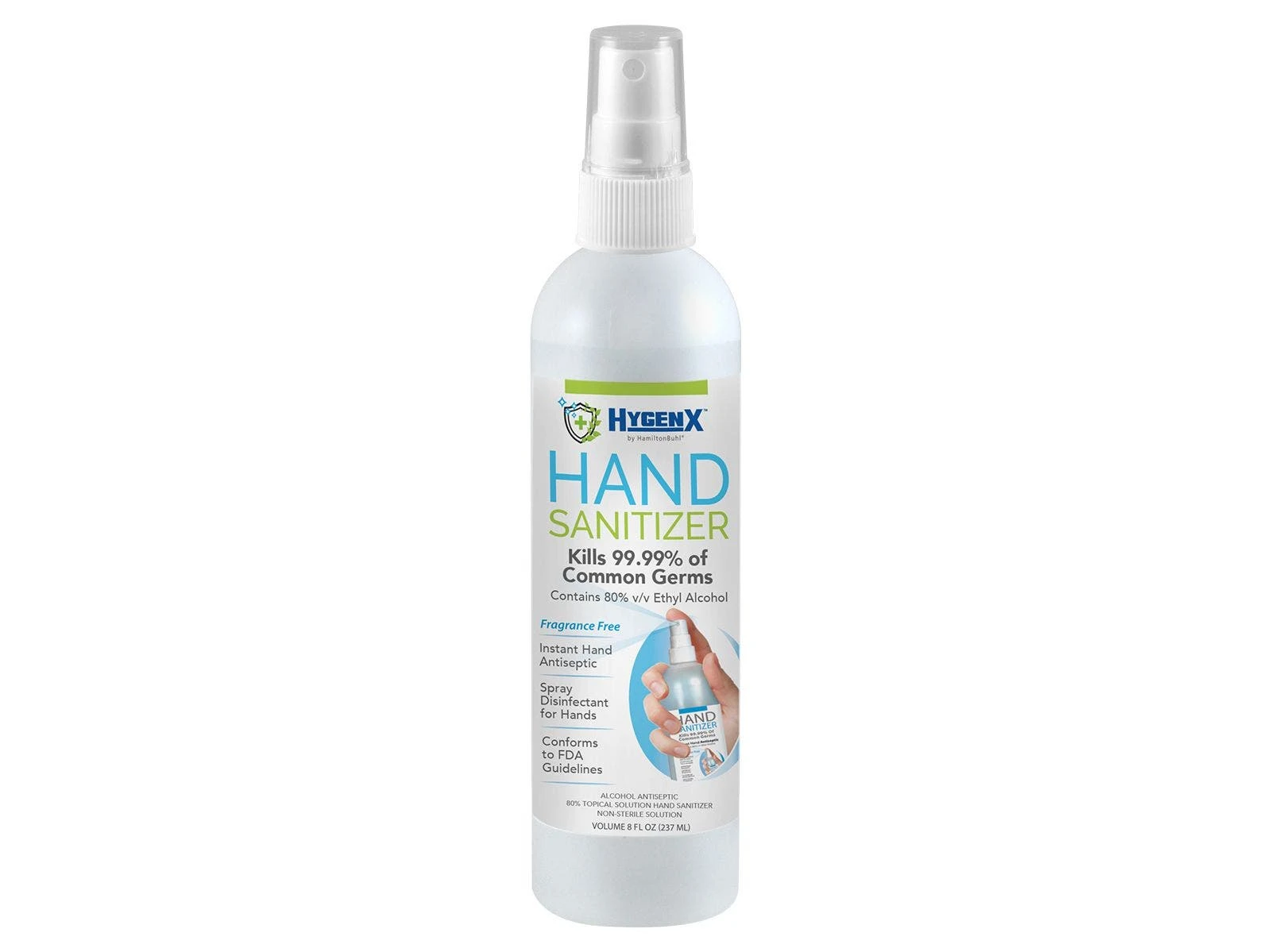 Fragrance-free antiseptic spray contains 80% ethyl alcohol and conforms to FDA and CDC guidelines. Simply spray on hands whenever washing with soap and water is not an option. Spray bottle available in 2 sizes: 8 oz or 16 oz. Also available in a gallon for quick refills.
