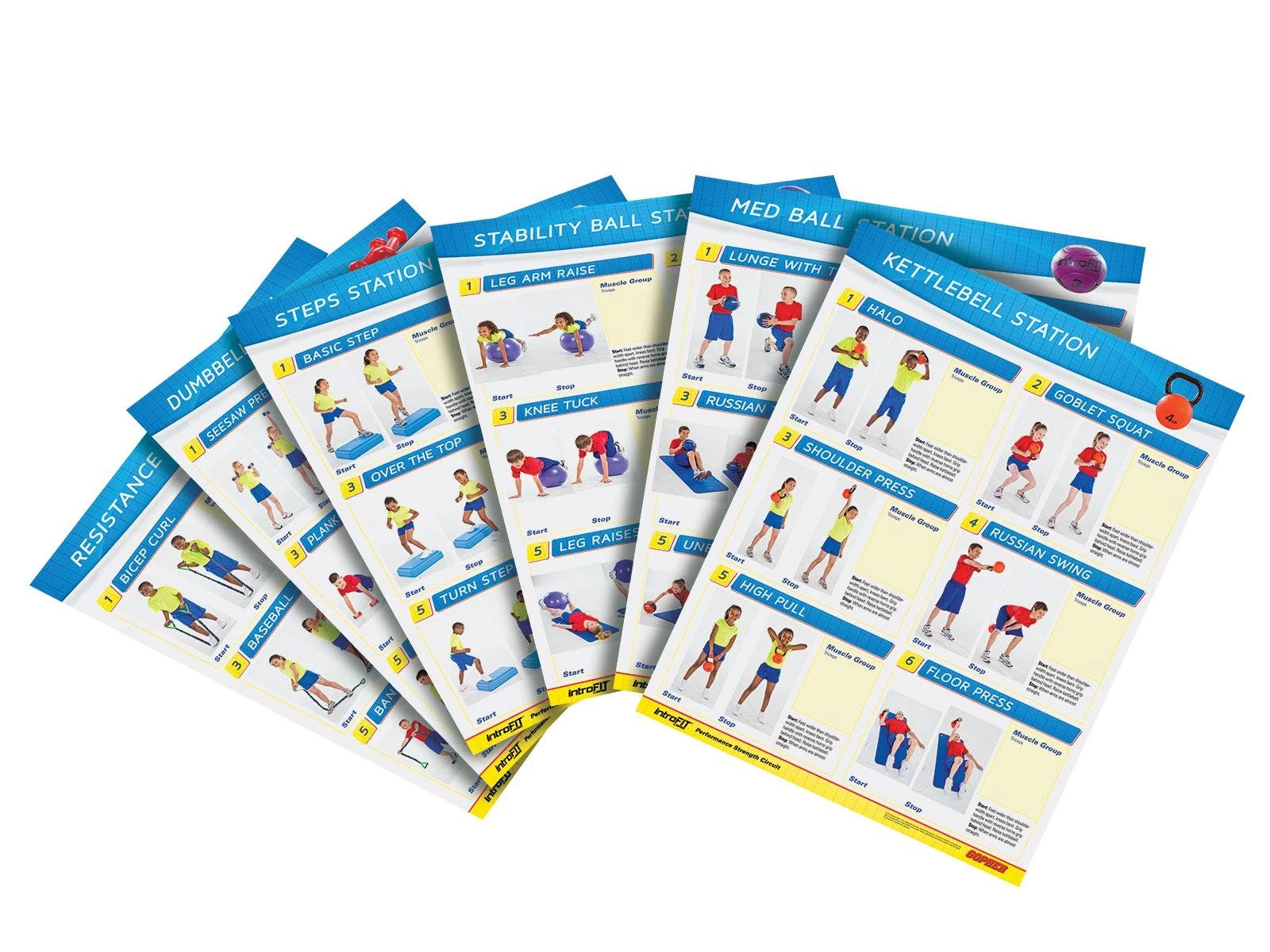 There’s no need to seek out additional resources or look online to find a comprehensive teaching strategy for fitness. These posters contain all of the vital information need to help students develop a keen understanding of fitness concepts for dumbbells, kettlebells, medicine balls, resistance tubing, stability balls, and steps.