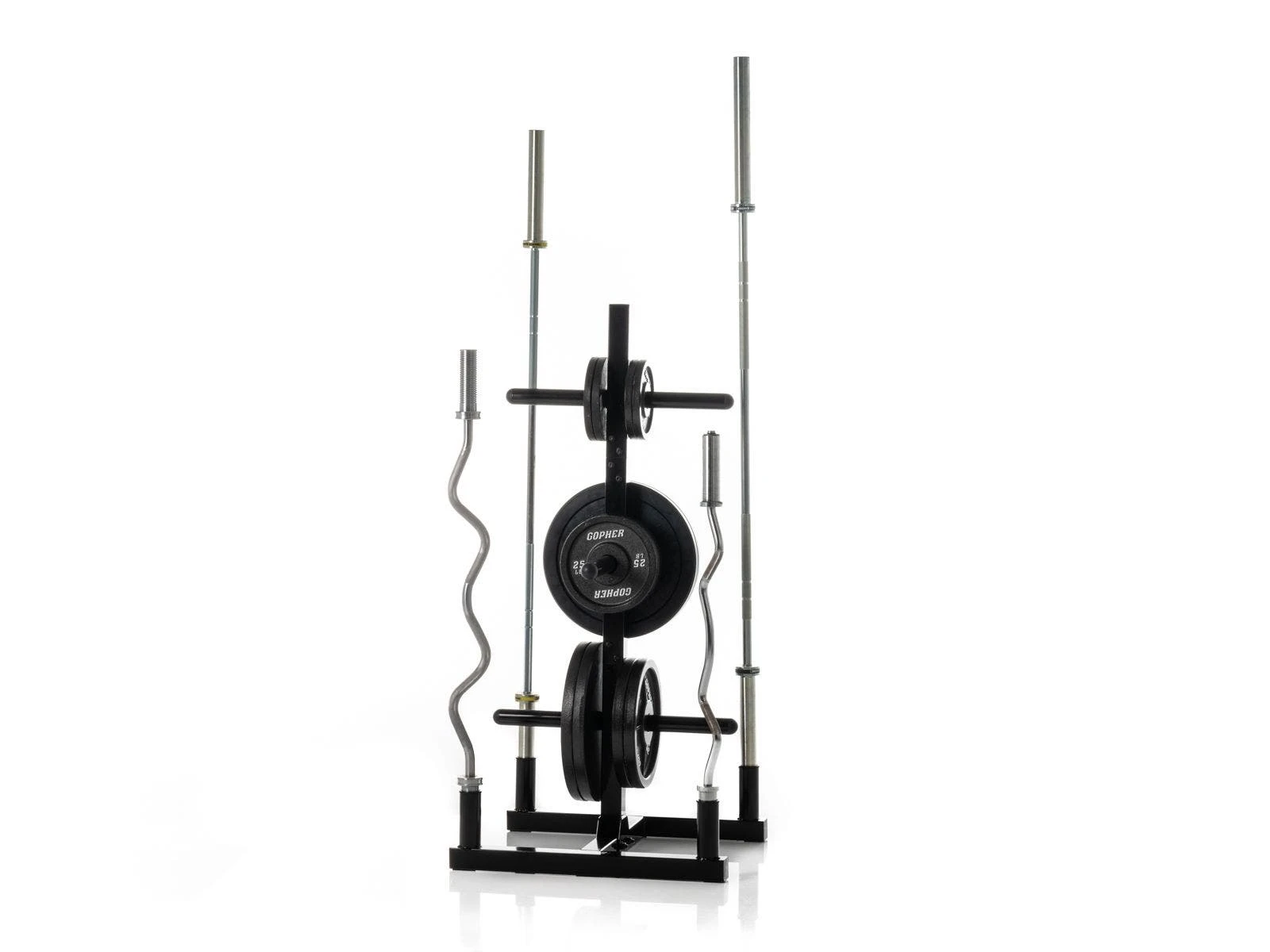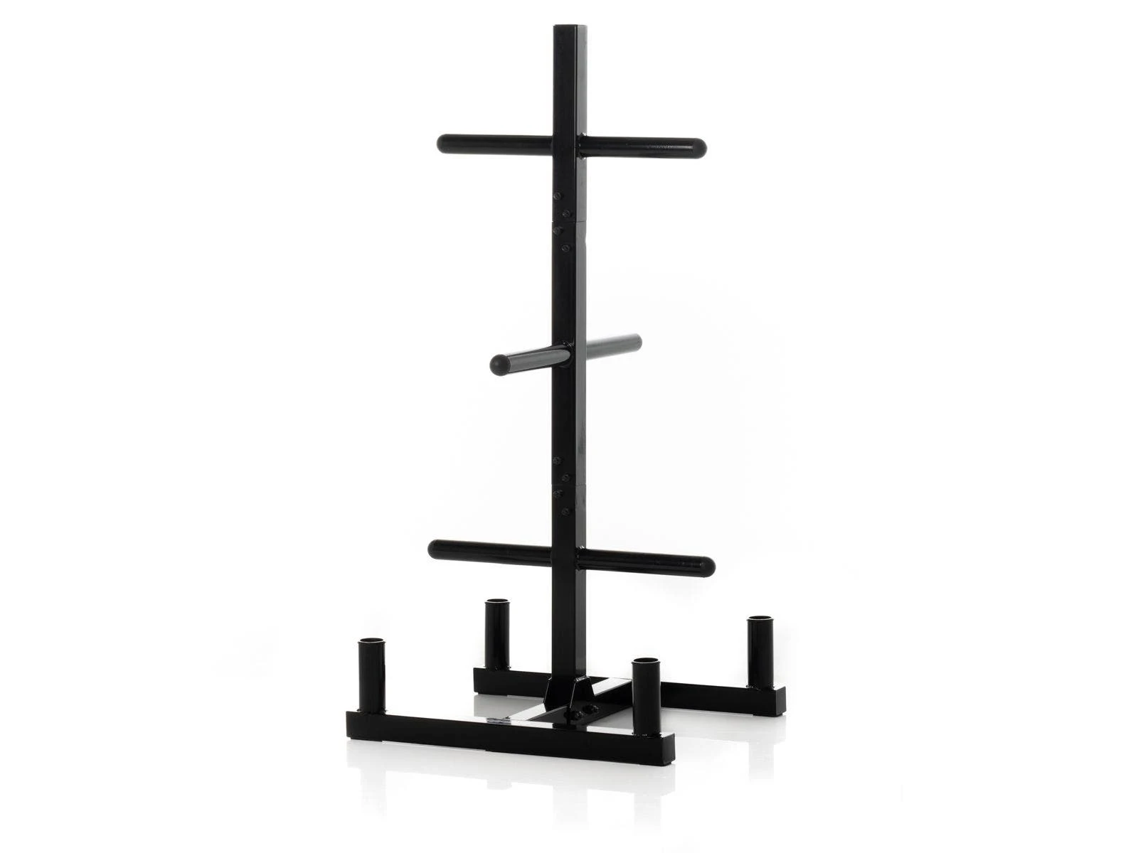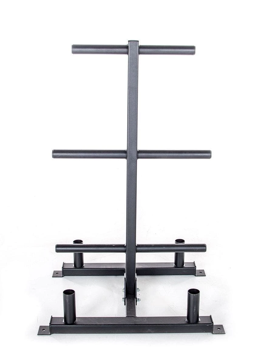 - The Bumper Plate Tree is modeled after a traditional plate tree, but has a larger design to hold bumper plates and 4 bars. Additional storage pegs on the rack provide a spot for each weight of plate.