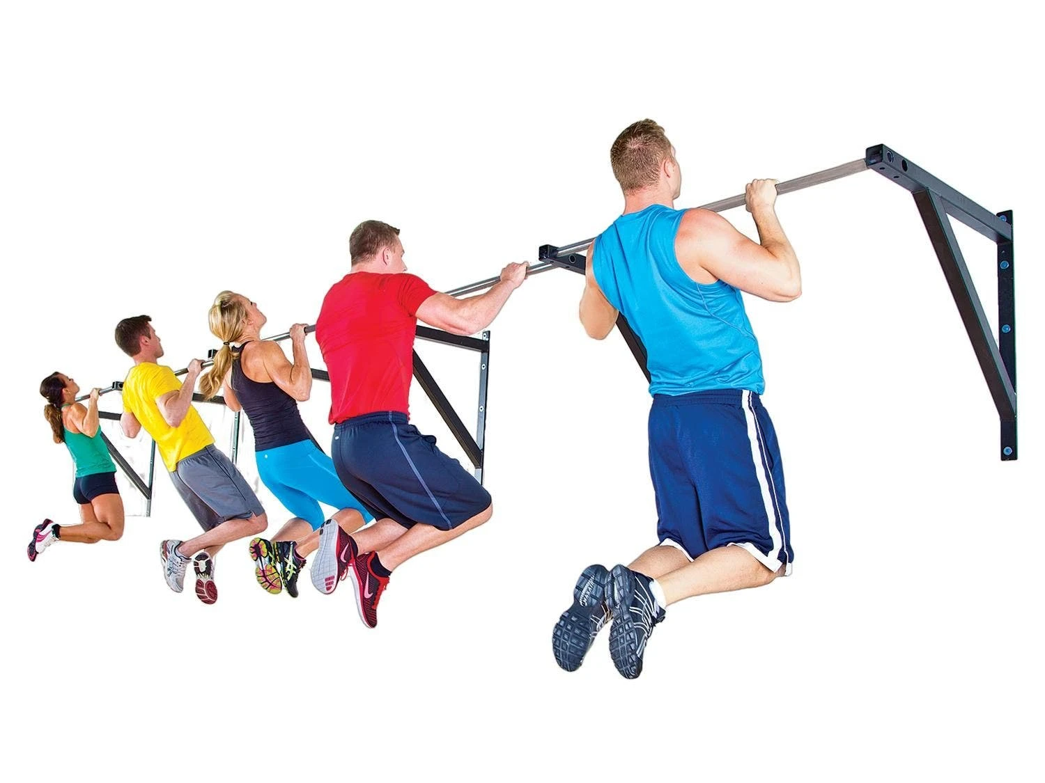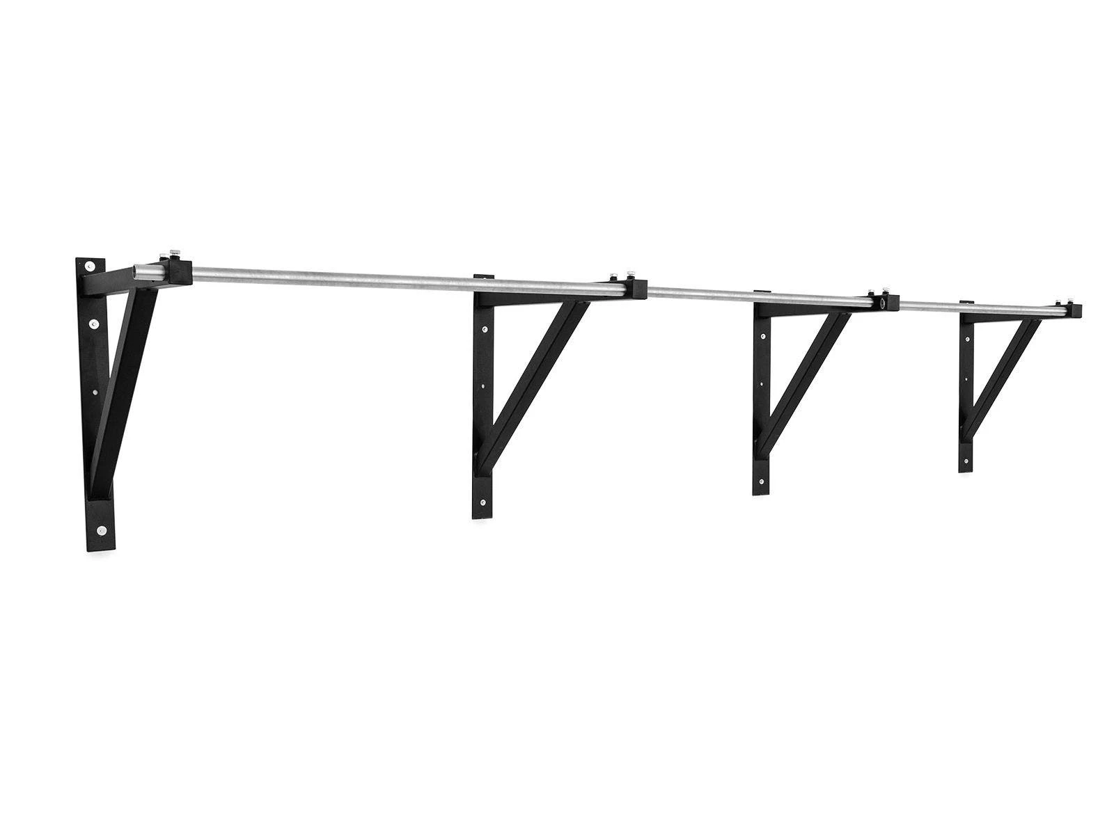 Extra space between users and the wall makes these pull-up bars perfect for large-range exercises, including kipping and suspension training. Get the best grip on the bar thanks to a zinc coating. Each heavy-duty station supports up to 500 lb, accommodating many users.