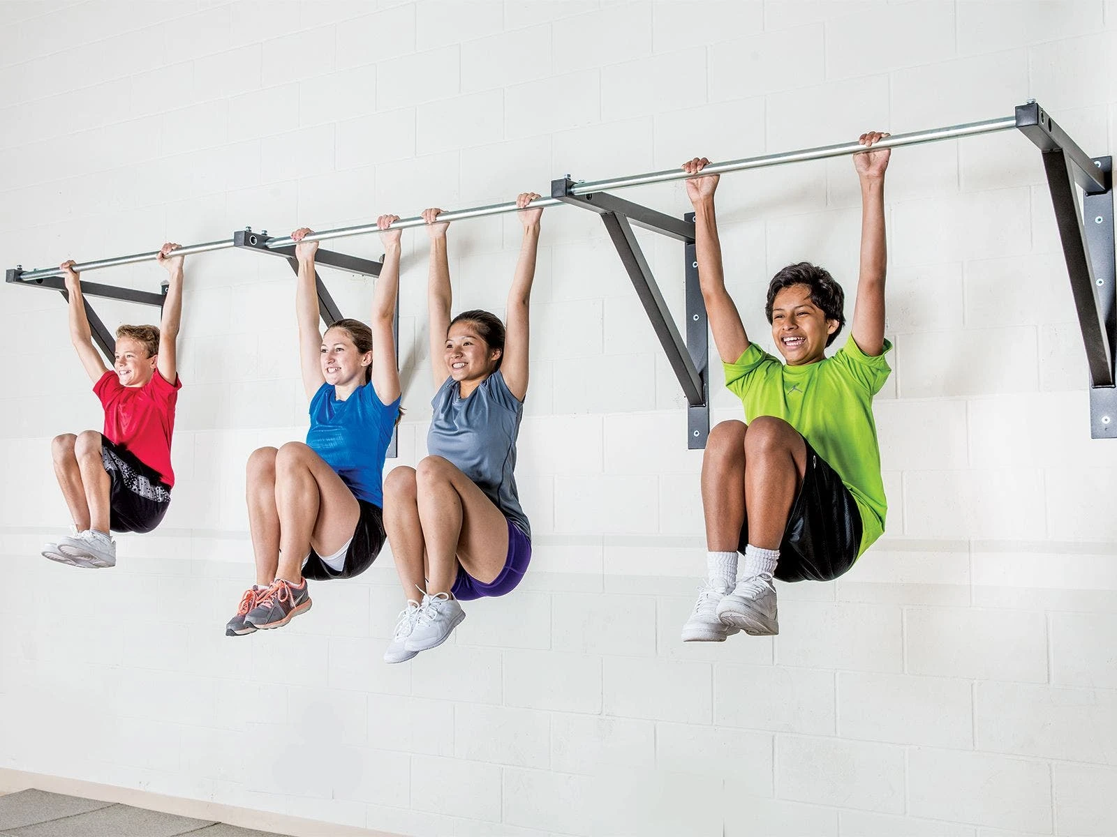 Large-range exercises like kipping and extension training are made comfortable and efficient with this roomy expandable pull-up bar system. The bar itself hangs 30″ away from the wall, so students can comfortably perform kips, knee raises, and suspension training without worrying about hitting feet or knees against the wall. Single Stations support up to 500 lbs, and you can easily expand your bar and accommodate even more students by adding more stations.