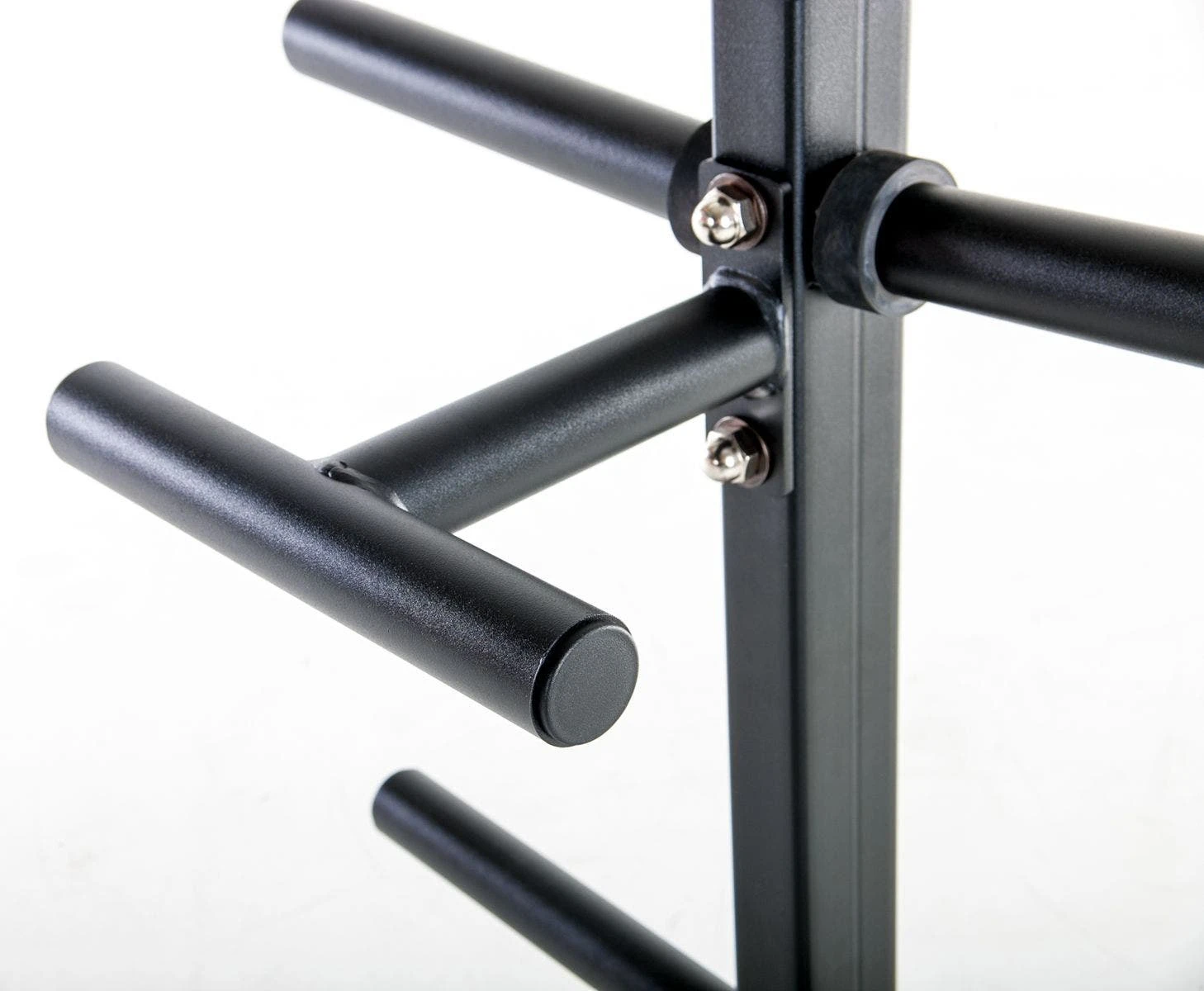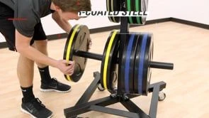 Designed to fit through doorways with 4-smooth rolling casters, this storage rack makes it easy to transport plates from room to room. Four 13″ arms allow for quick loading and unloading of plates and are spaced evenly to accommodate large bumper plates. A large T-handle allows for easy control. All-steel welded construction allows for lasting durability and performance. Made in the USA. 400 lb capacity. 28-1/2″L x 27″W x 45″H; 53 lb.