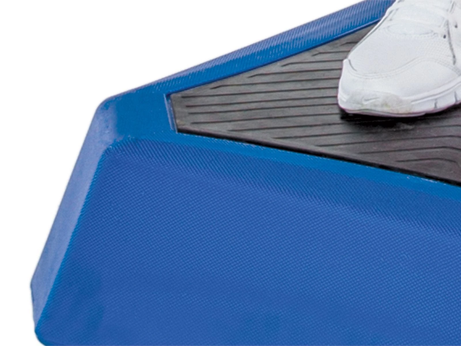 A rubber top provides traction for users when they land while a 27″ sq landing space boosts accuracy and confidence. Beveled edges minimize the chance of injury. Rubber feet ensure box doesn’t move during use, keeping users safe at all times. Each box is 20 lb. Patented.