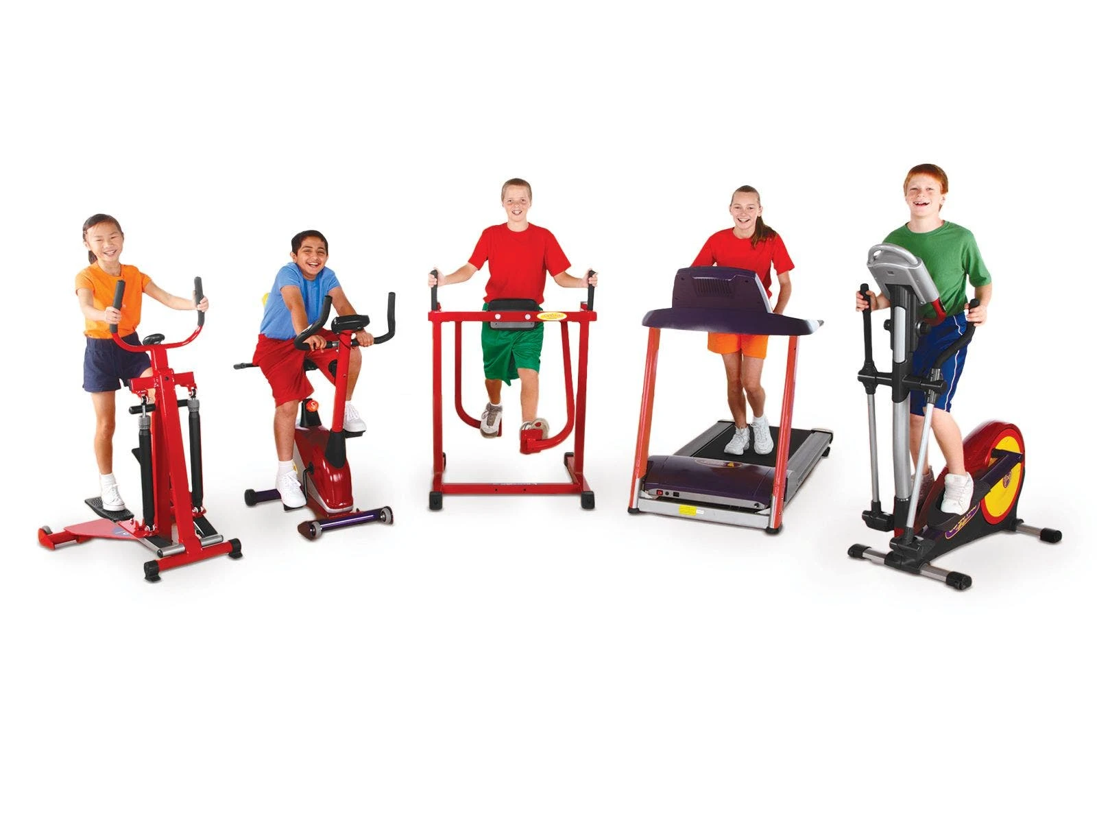 Complete set introduces students to Cardio Kids fitness equipment and helps them develop a healthy enthusiasm for working out, one machine at a time! Youth involvement in training—specifically in cardio and strength training—helps build self-esteem, promotes healthy hearts, boosts the metabolism, strengthens bones, and lays the foundation for lifelong healthy and active lifestyles.