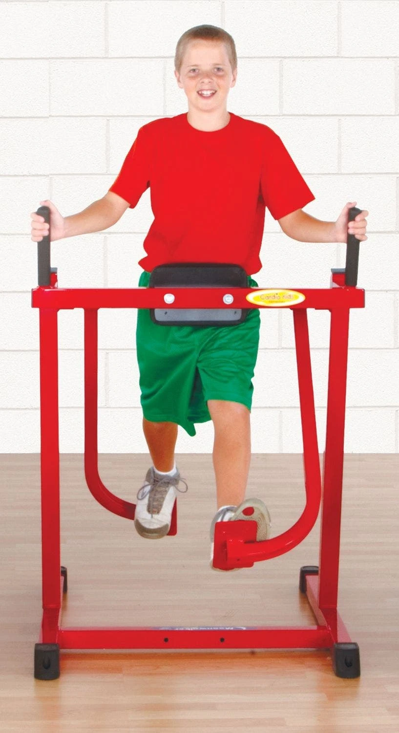 Simple, tension-free motion increases heart rate while teaching balance and coordination. Features non-skid rubber feet grips, upholstered padding, and padded hand grips. 36”L x 33”W x 45”H; 100 lb.