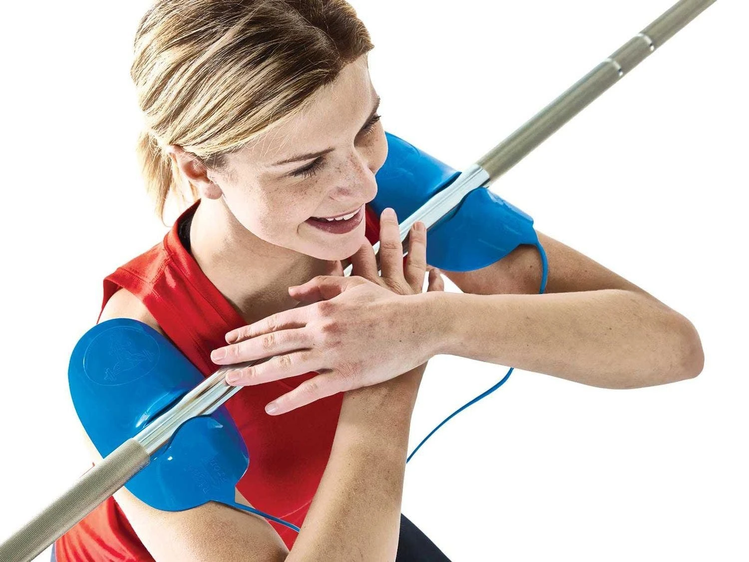 Manta Ray barbell pad rests on the upper back and shoulders to evenly distribute the weight of a bar and plates, relieving pressure and discomfort during squats. Sting Ray includes 2 shoulder pads, clearly labeled right and left, for the same weight distribution on front squats. Both also assist in maintaining a proper bar position, are made of densely-molded plastic, and easily snap onto a 29 mm bar for a snug fit. One size fits all.