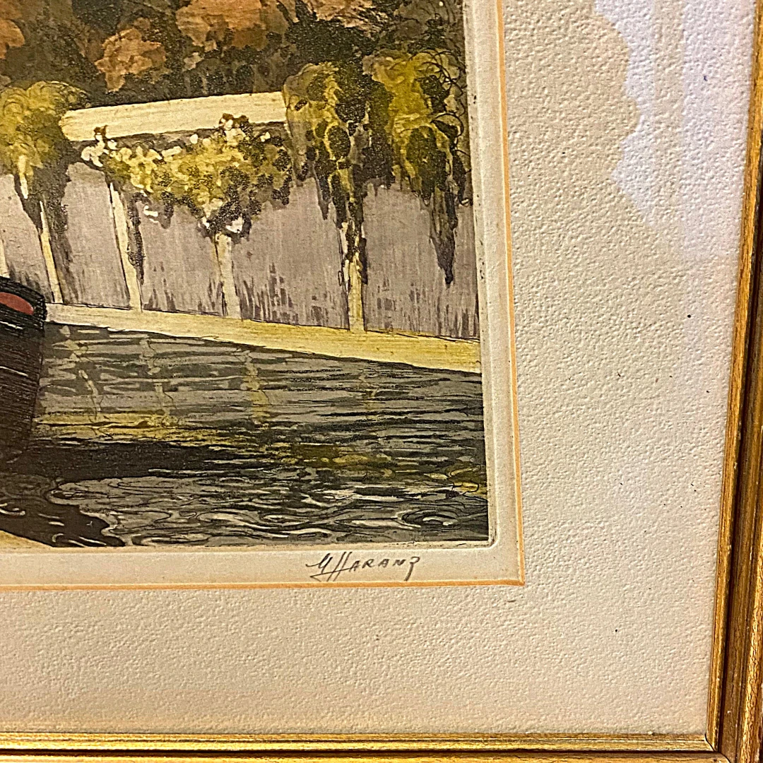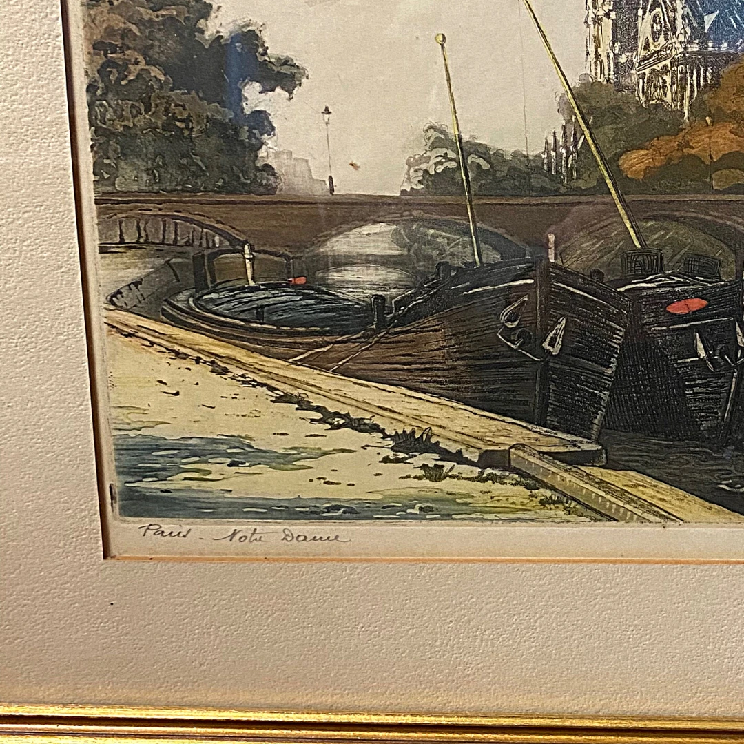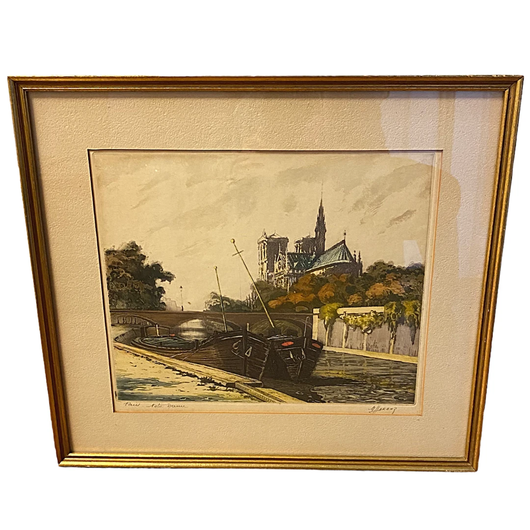 Marcel Harang French Artist Pencil Signed Paris Notre Dame Hand Colored Artwork