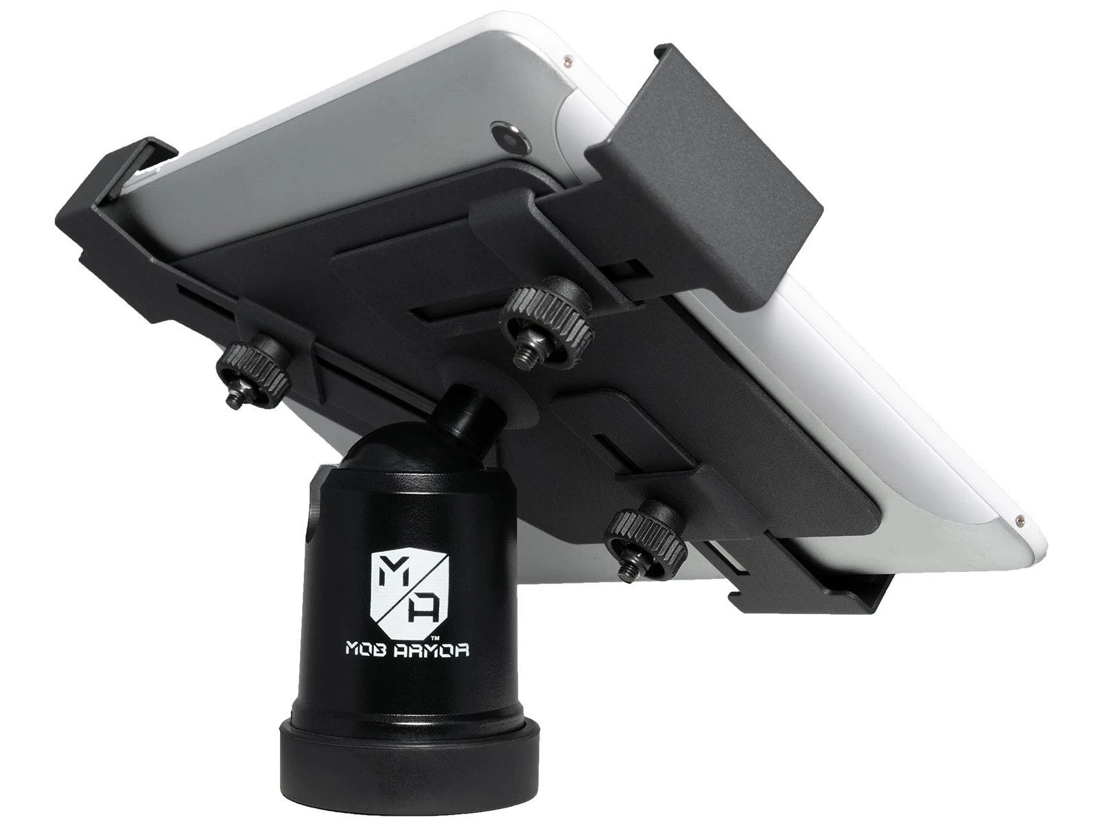 Students can protect their tablet without sacrificing the perfect angle for recording reps, reviewing footage for measurable improvement, and accessing daily programming. A heavy-duty locking bracket safely secures devices for peace of mind during long sets. This no-nonsense mount also features a ball joint that tilts 90 degrees in any direction and rotates 360 degrees to allow the perfect angle for any athlete or lift. Since it mounts directly to a rack in plain sight, users can work out without fear of damage to or theft of their mobile device.