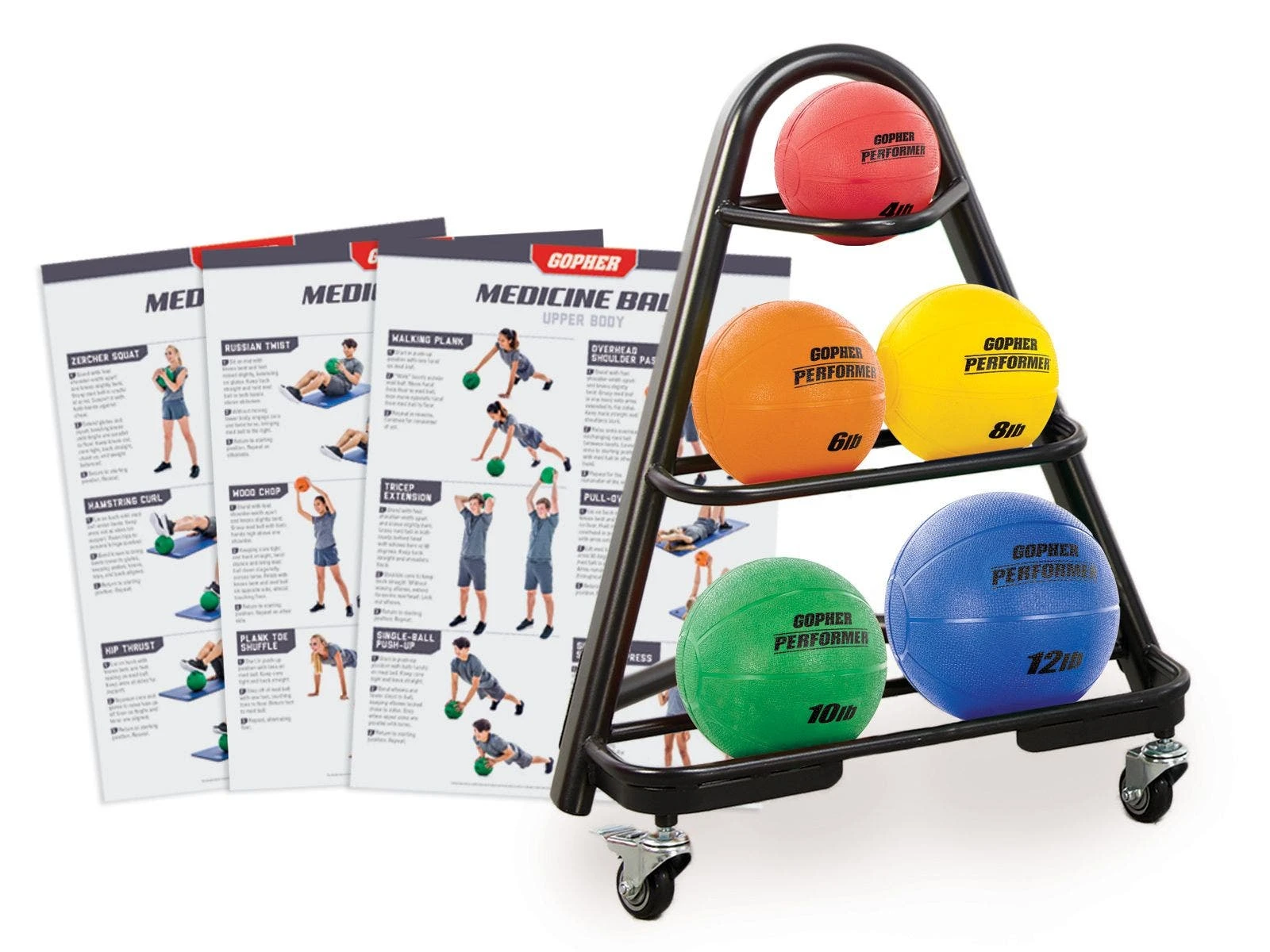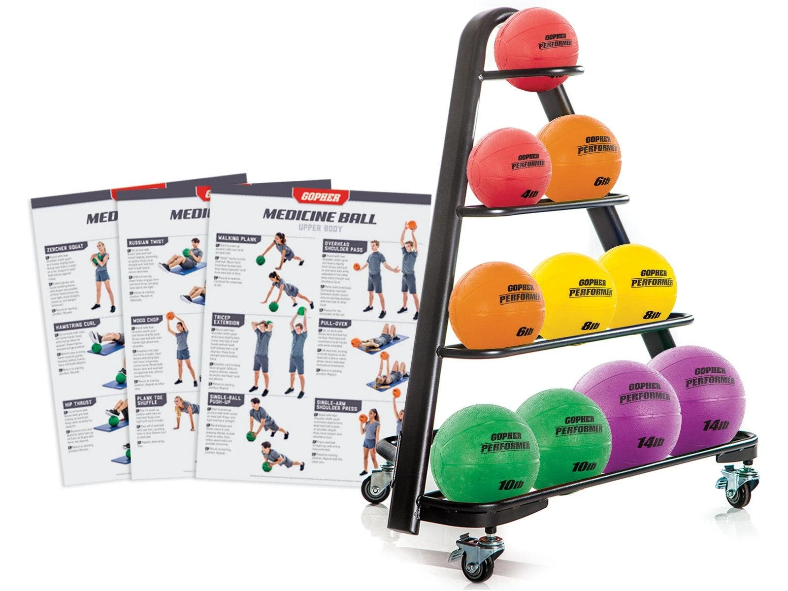 - 15-Ball Set. Includes 3 ea 6-10 lb; 2 ea 4, 12, 14 lb), 1 UltraFit 3-Tier Rack, and 3 laminated UltraFit Training Charts.