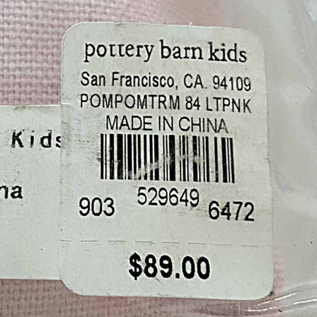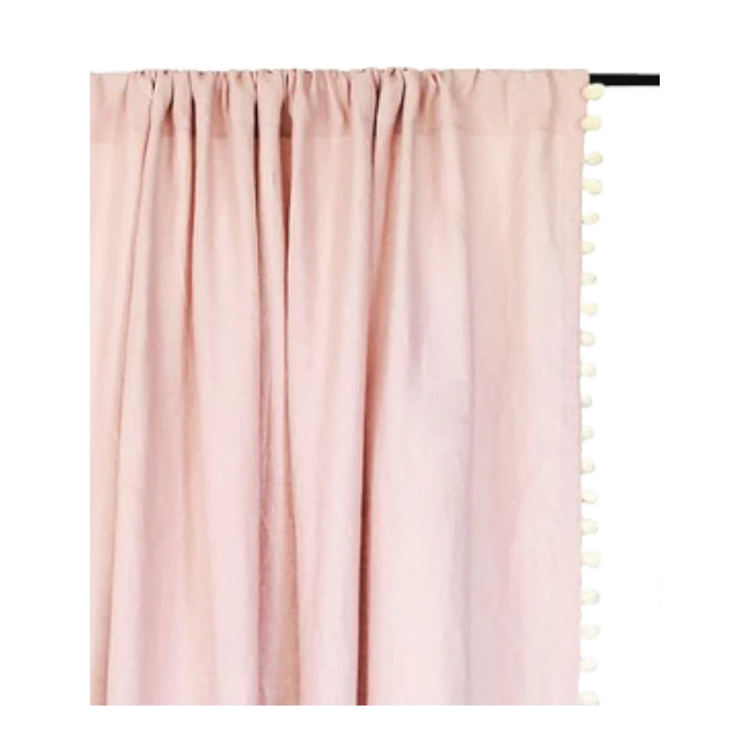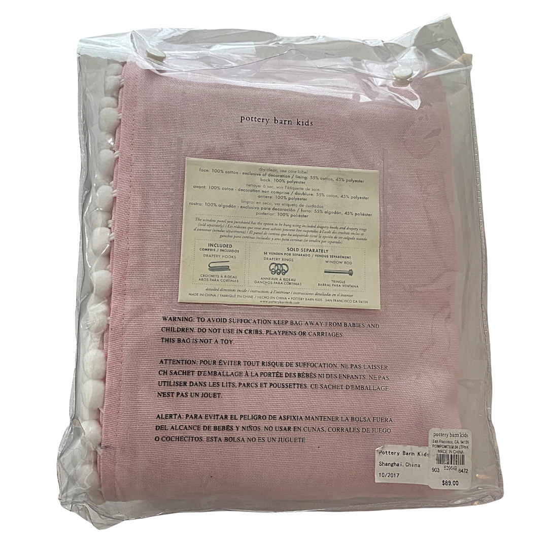 Pottery Barn Pink Pom Pom Trim Blackout Panel 84″