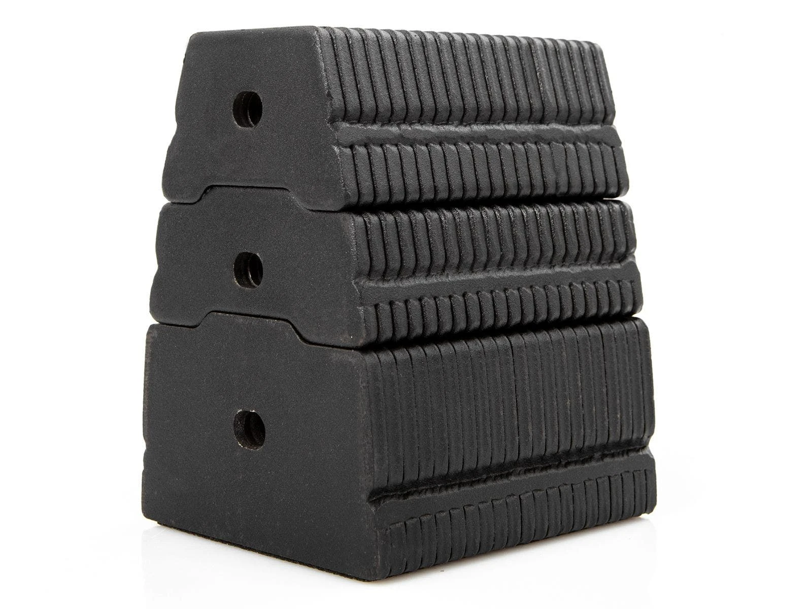 Packing three weights inside of a weighted shell, this kettlebell seamlessly adjusts from 18 lb to 35 lb in seconds, making it the most versatile bell in your weight room. Simply place the side pin in any slot on the shell to adjust it to your desired weight and immediately start lifting at your level. A magnetic pin head keeps weights in place in front rack position and during swings and overhead movements for ultimate safety. A classic contoured bell shape increases comfort for students’ forearms and reduces impact during quick reps. Cast-iron construction withstands institutional use and abuse (not intended for gym floors). Includes 18 lb (9 kg) shell and nesting 22 lb (10 kg), 26 lb (12 kg), and 35 lb (16 kg) weights.
