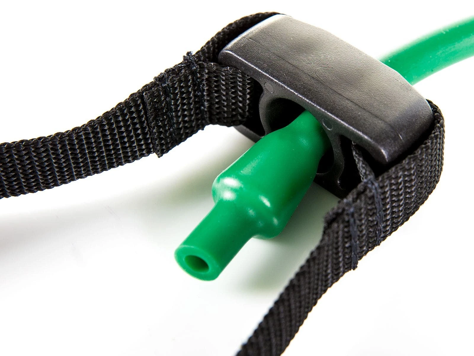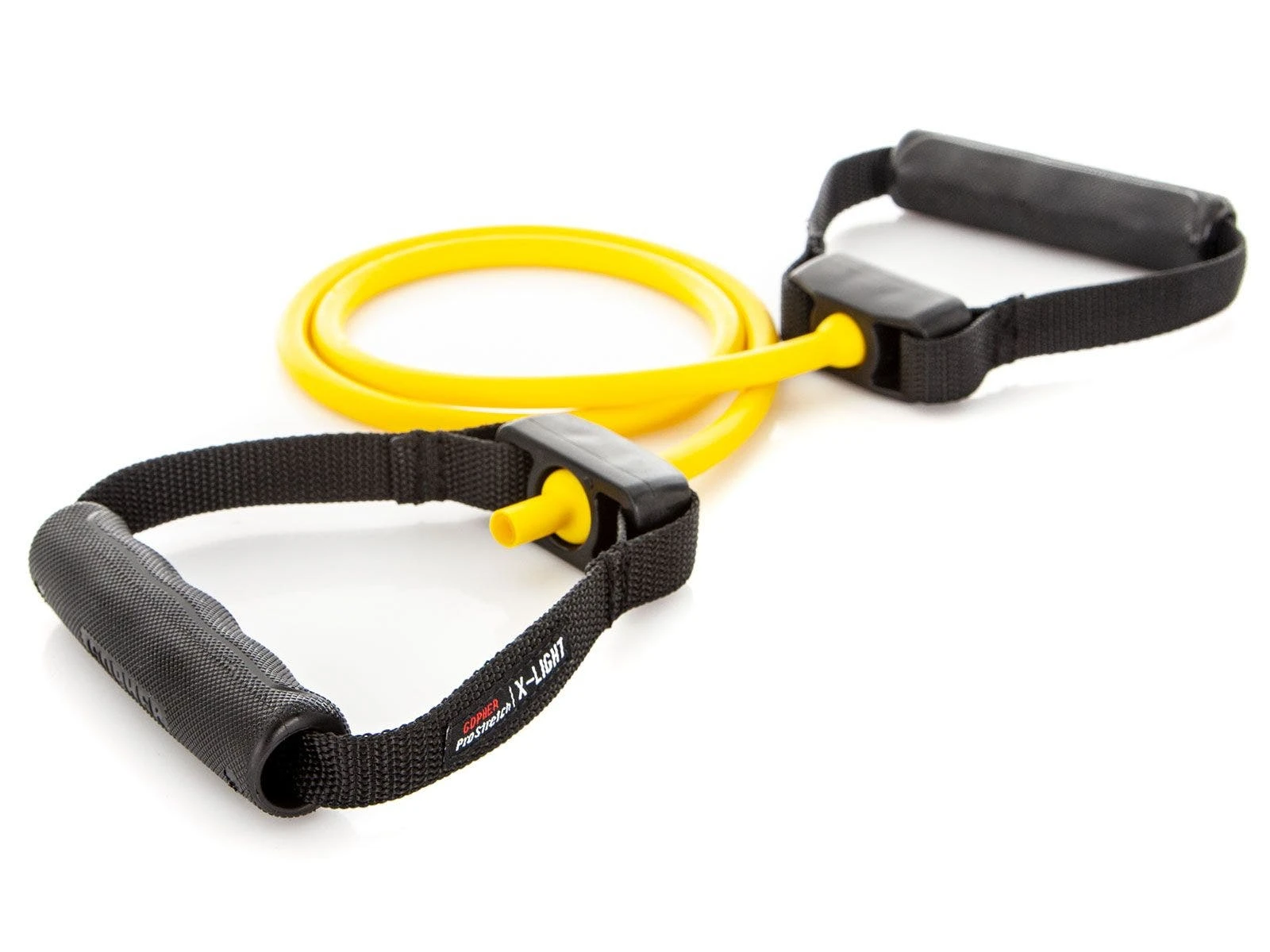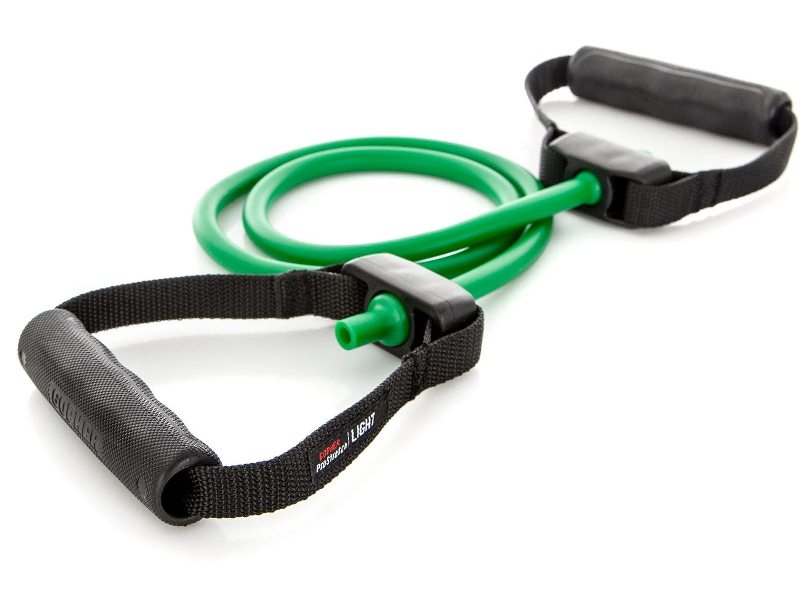 Heavy-duty plastic handles are molded to fit comfortably in hands so students can focus on working out, not adjusting their grip. Exceptional rubber-dipped, 48”L latex tubing is made with progressive-layering technology for the most consistent resistance during movements. Nylon straps connect tube to handle via a durable plastic piece that cradles tube for increased longevity.