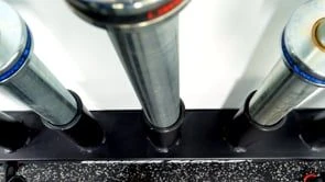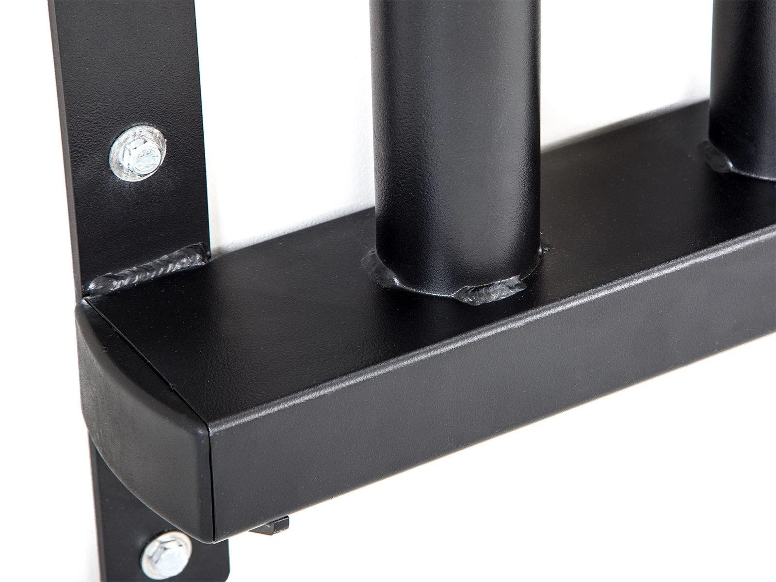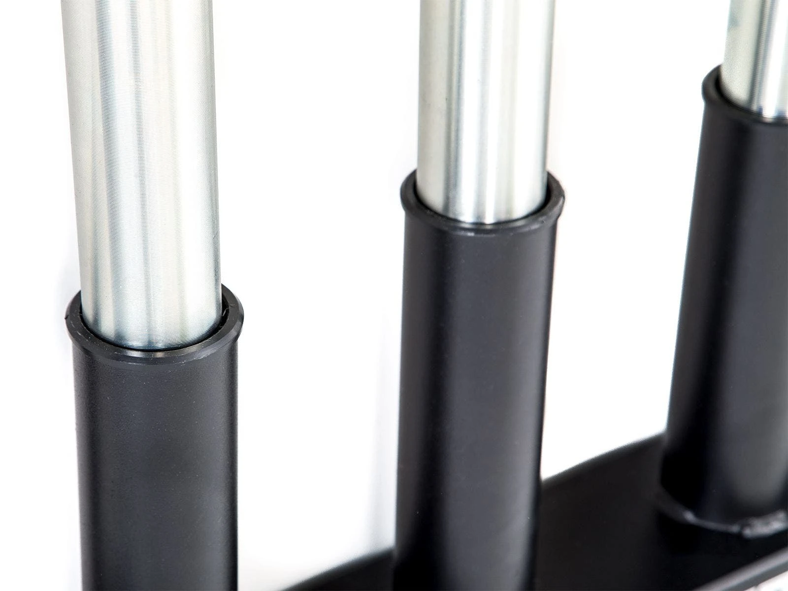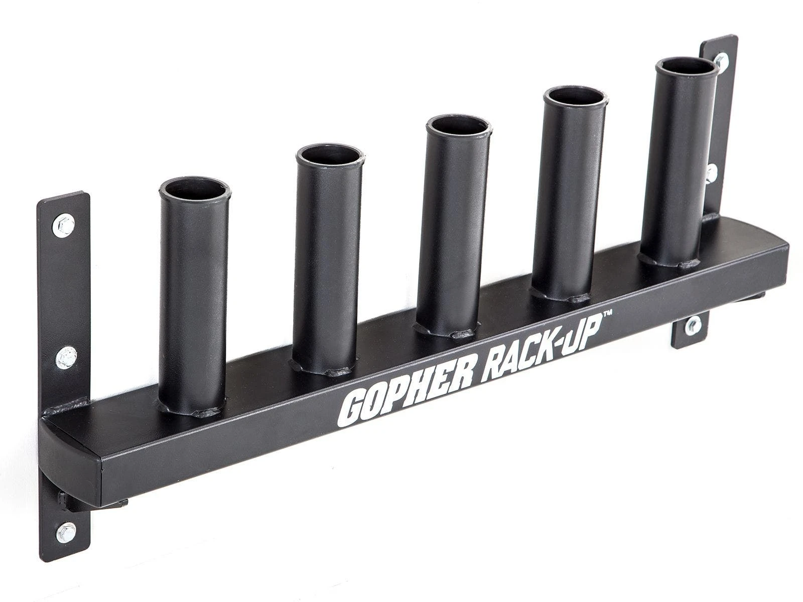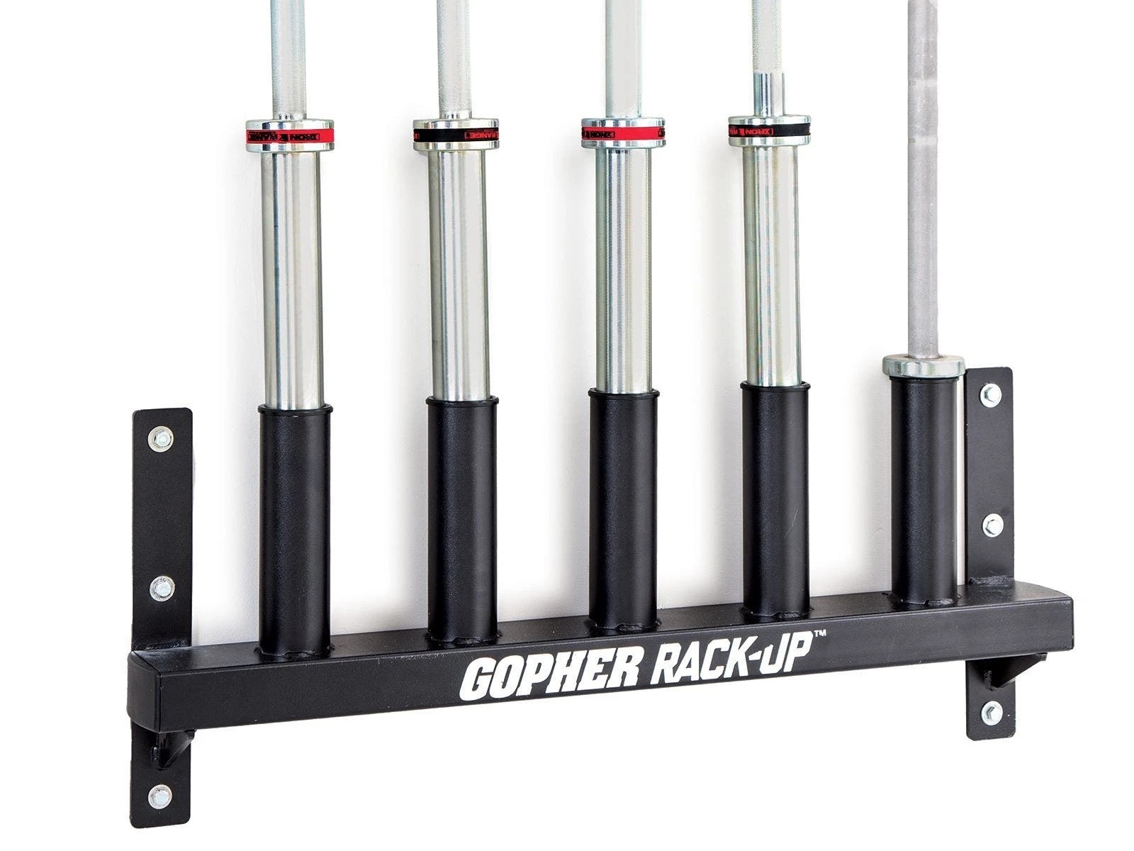 Vertical bar racks mount to the wall, keeping bars organized and out of the way. Foam in each of the 5 bar inserts protect bars from damage. A great option for small spaces. Durable 11-gauge steel construction. 34″L x 4″D x 14″H; 29 lb.