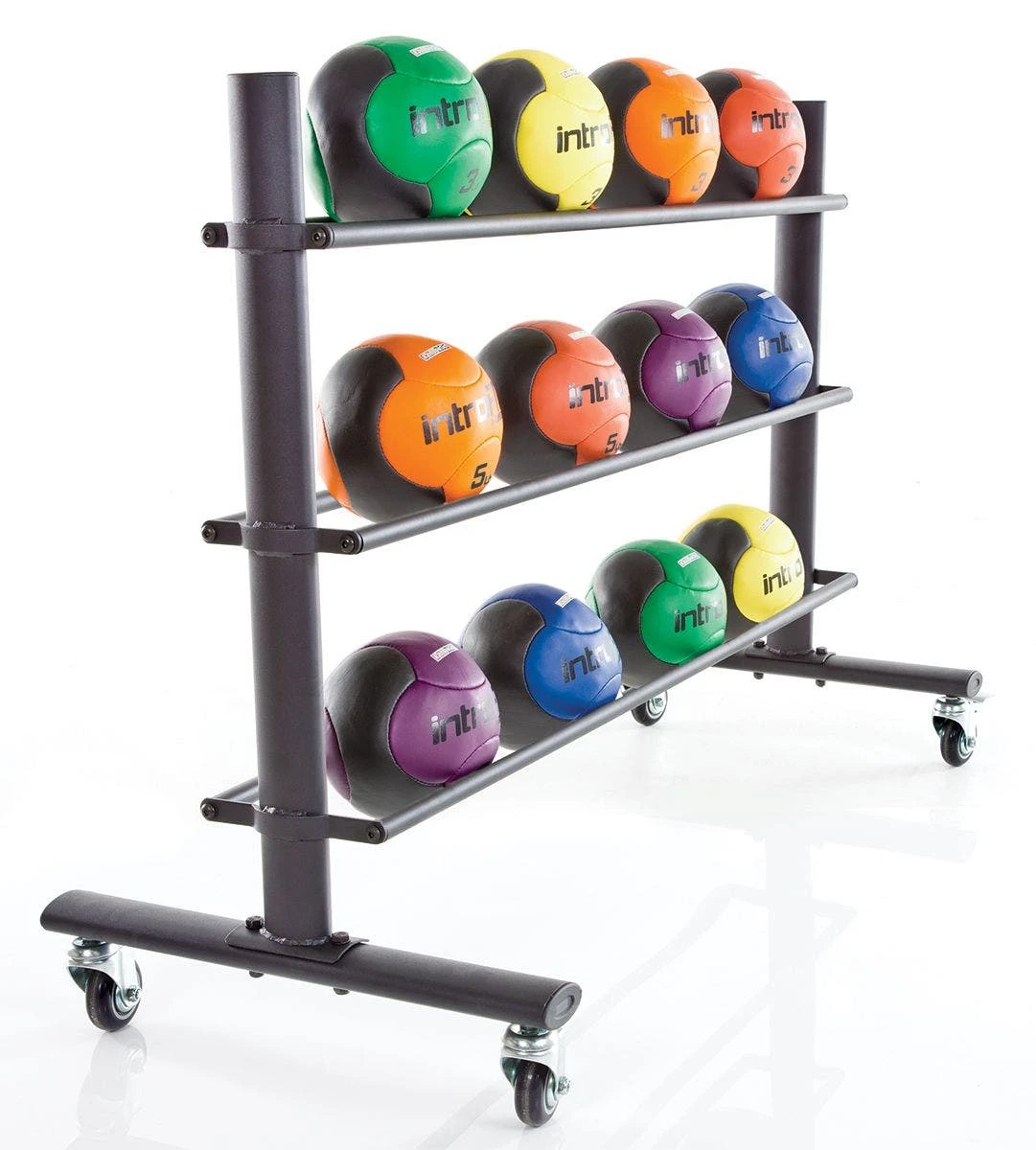 - Rainbow Pack. Includes 12 medicine balls (6 ea 3 lb, 5 lb), a laminated exercise guide, and an 3-Tier UltraFit Steel Medicine Ball Rack.