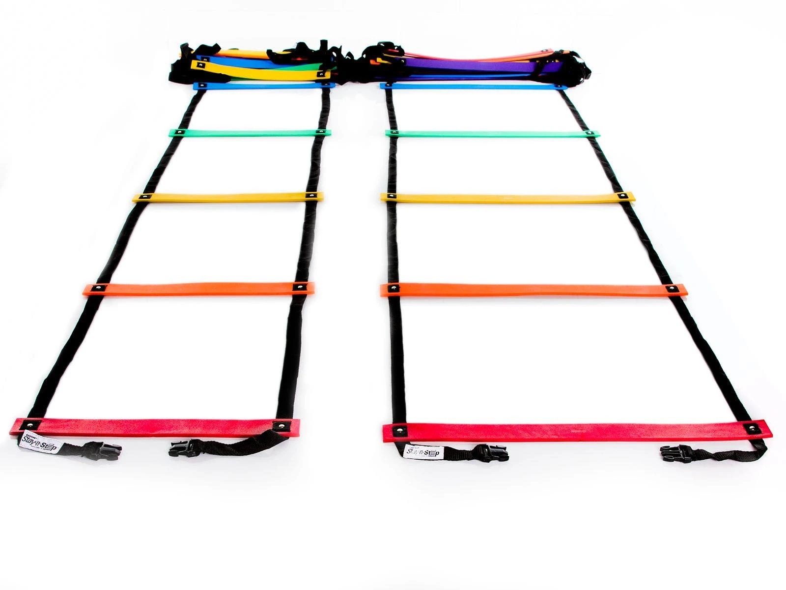 Two size options accommodate the whole class and allow for a steady progression of difficulty. Buckles at the ends of each ladder allow teachers to connect several ladders for stamina and endurance training.