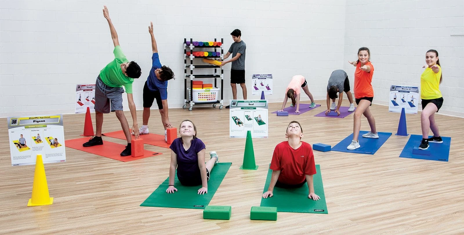 This convenient circuit pack is specifically tailored for PE classes and includes everything you need to engage up to 24 students across 6 color-coded yoga stations. Each color represents a specific pair of movements, allowing students to simply move from station to station for a challenging total-body session for the whole class. Twelve fundamental poses, from down dog to eagle pose, improve muscle strength and athletic performance while increasing flexibility, energy, and vitality.