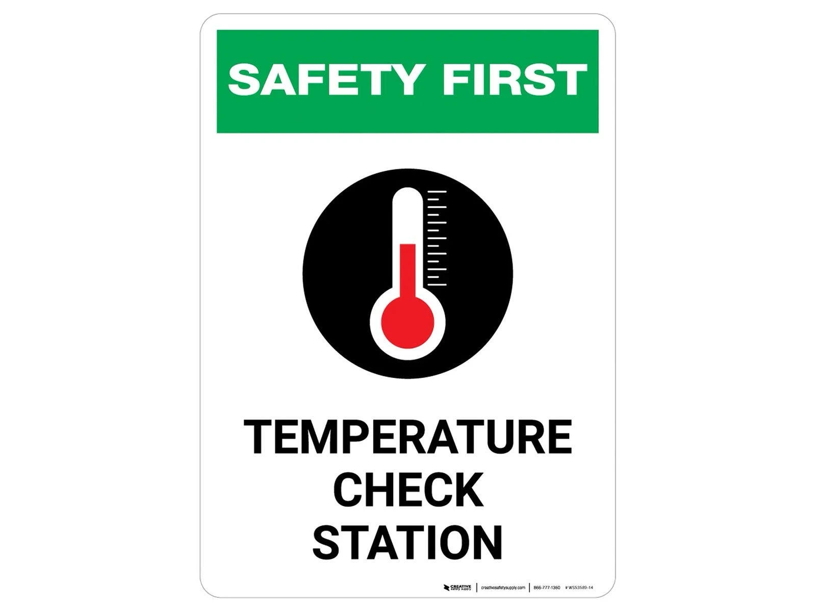 Encourage students, parents, and other visitors to stop for a brief temperature screening using this wall graphic. Hang on walls at the entrance of public places such as schools, offices, and fitness centers. Choose from a wall decal sticker or a PVC sign. Each sign is 10″W x 14″H.