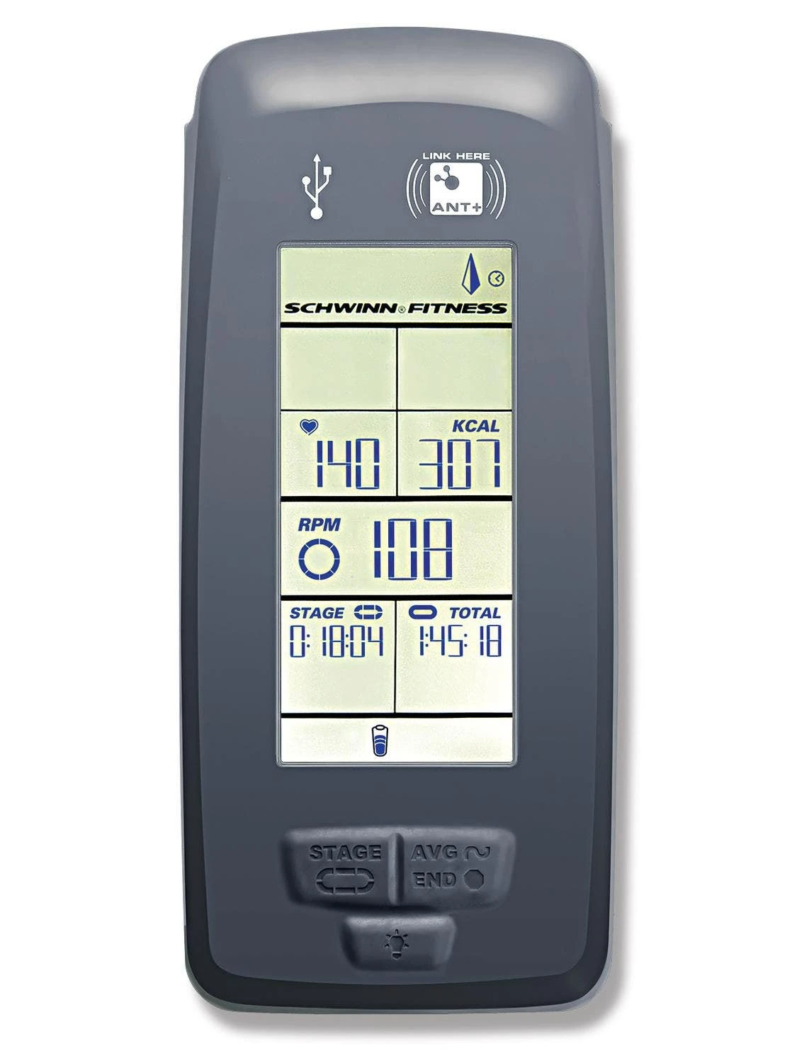 The MPower Console provides users with detailed information about their ride including RPM, calories, time, distance, power, and heart rate when using a heart rate strap (not included). The large, easy-to-read LCD display includes all measurements on one screen for easy reference. Riders can transfer data between the console and other devices through ANT+ technology or via a USB port for more in depth analysis.