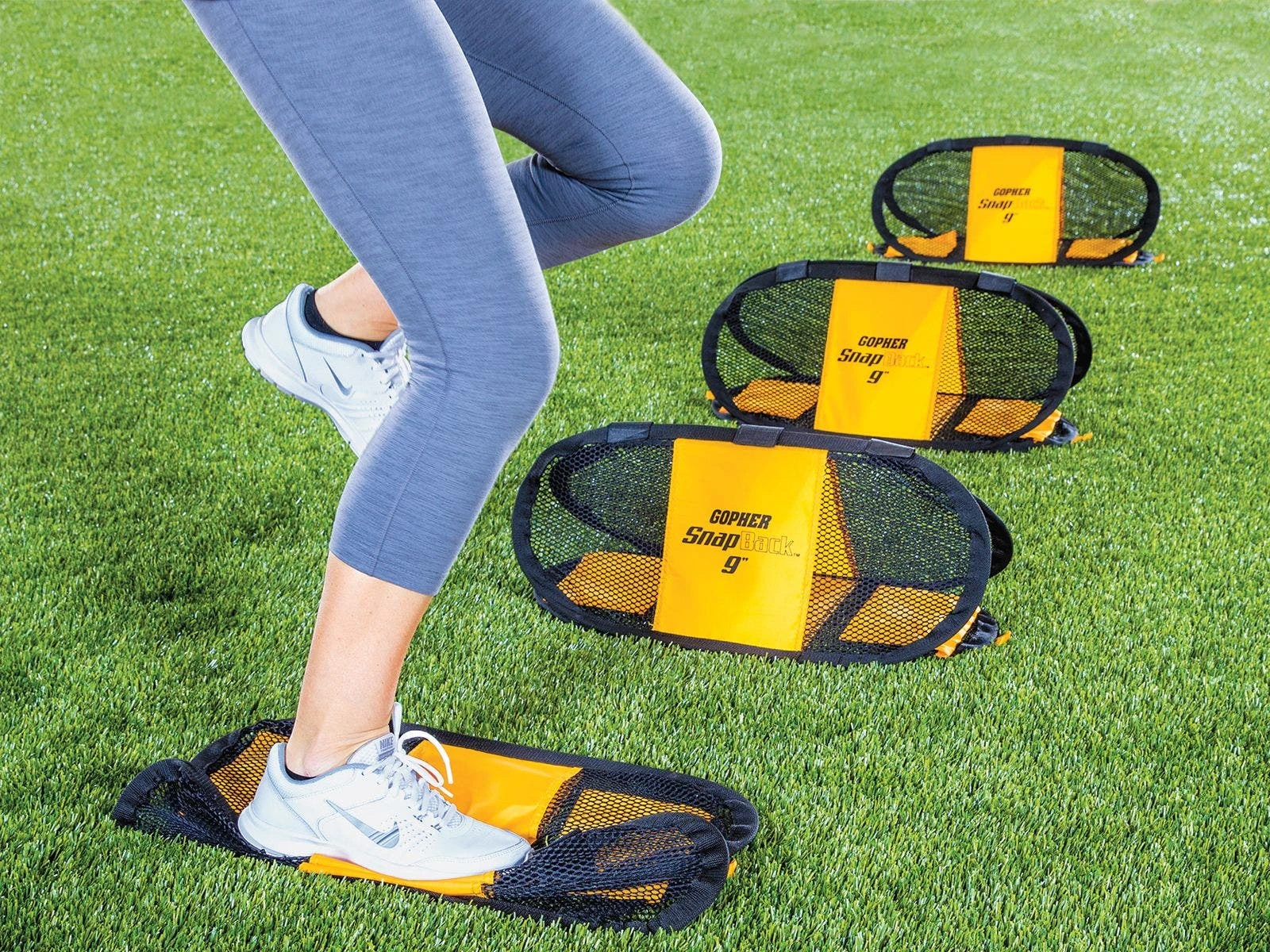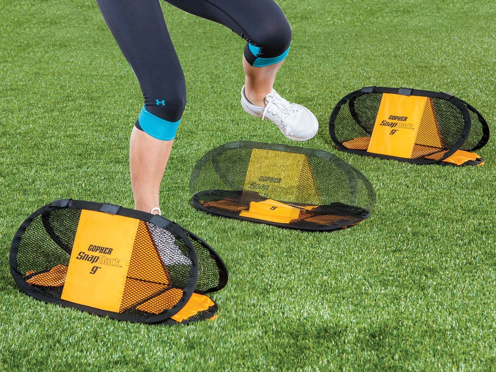 The 20″L hurdles are available in 3 heights (6″, 9″, 12″H) to accommodate all ages and abilities, and to allow for progressive training. The bold yellow color stands out against indoor and outdoor surfaces for enhanced visibility, so users can focus on technique and not spotting the next hurdle. Thanks to the pop-up design, errors are quickly forgotten as users line up again to run through drills.