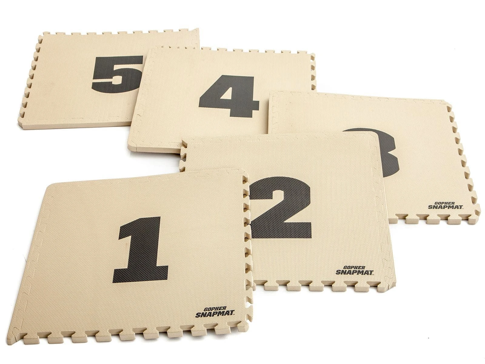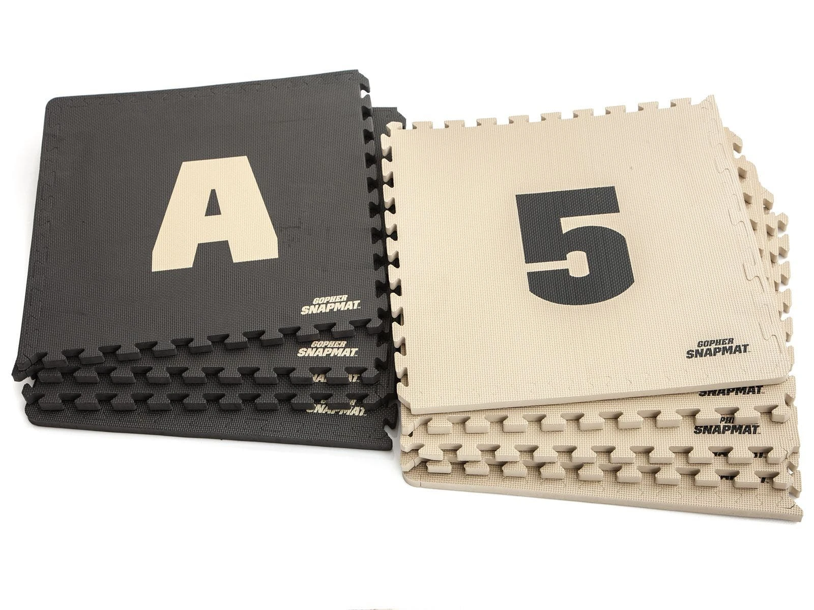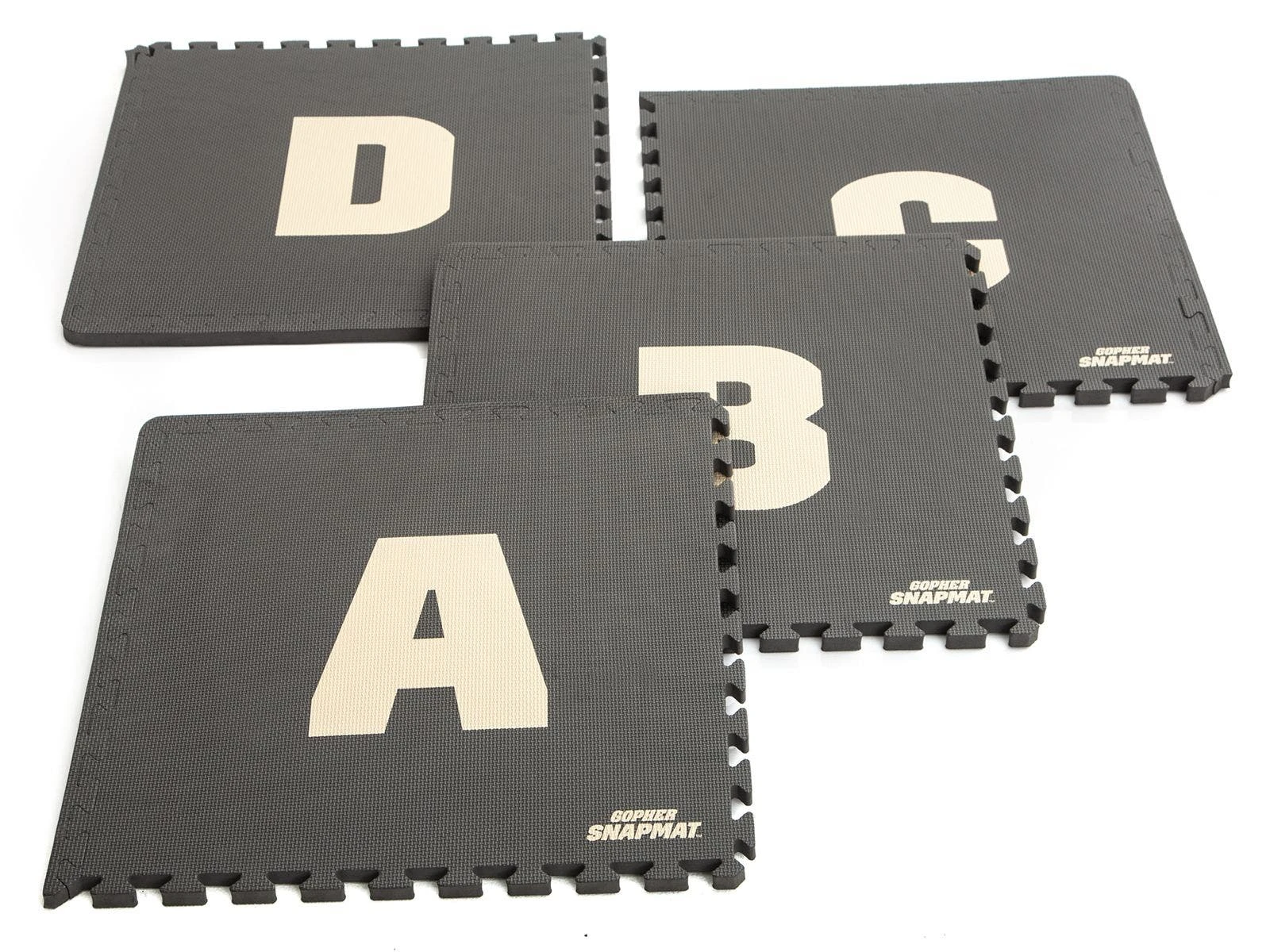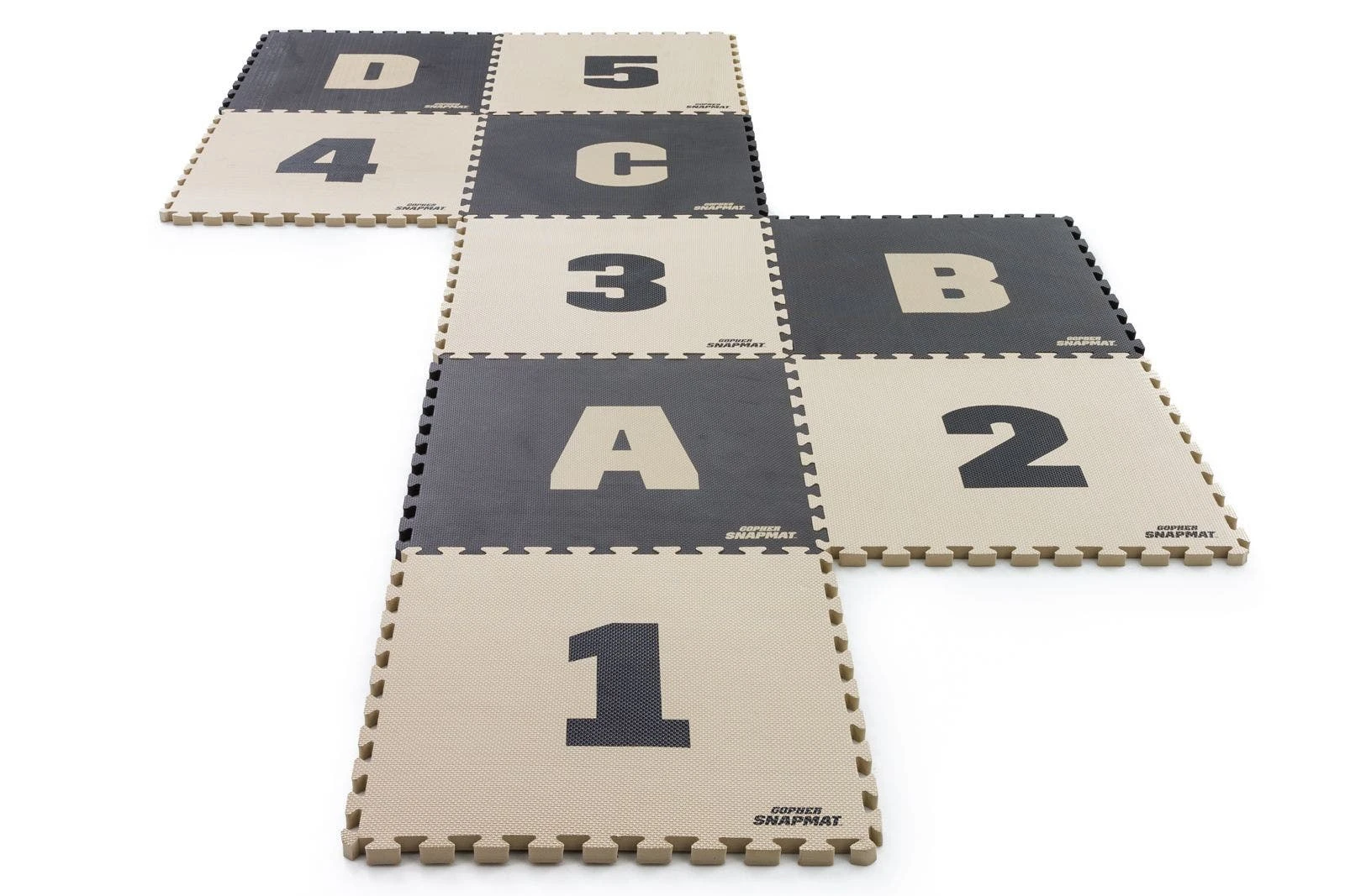 Foam mat segments featuring letters and numbers quickly snap together to form courses for versatile agility games and drills! Puzzle-piece edges easily interlace for a fast connection and reconfigure in seconds to keep athletes moving in all directions. Durable EVA foam rubber is lightweight for easy transport yet durable enough to withstand repeated footfalls in institutional settings. The combination of letters and numbers allows instructors to add depth to numerous games and drills. Includes 4 black tiles with tan letters (A-D) and 5 tan tiles with black numbers (1-5). Each tile is 23″ sq x 1″ thick. Set is 11½ lb.