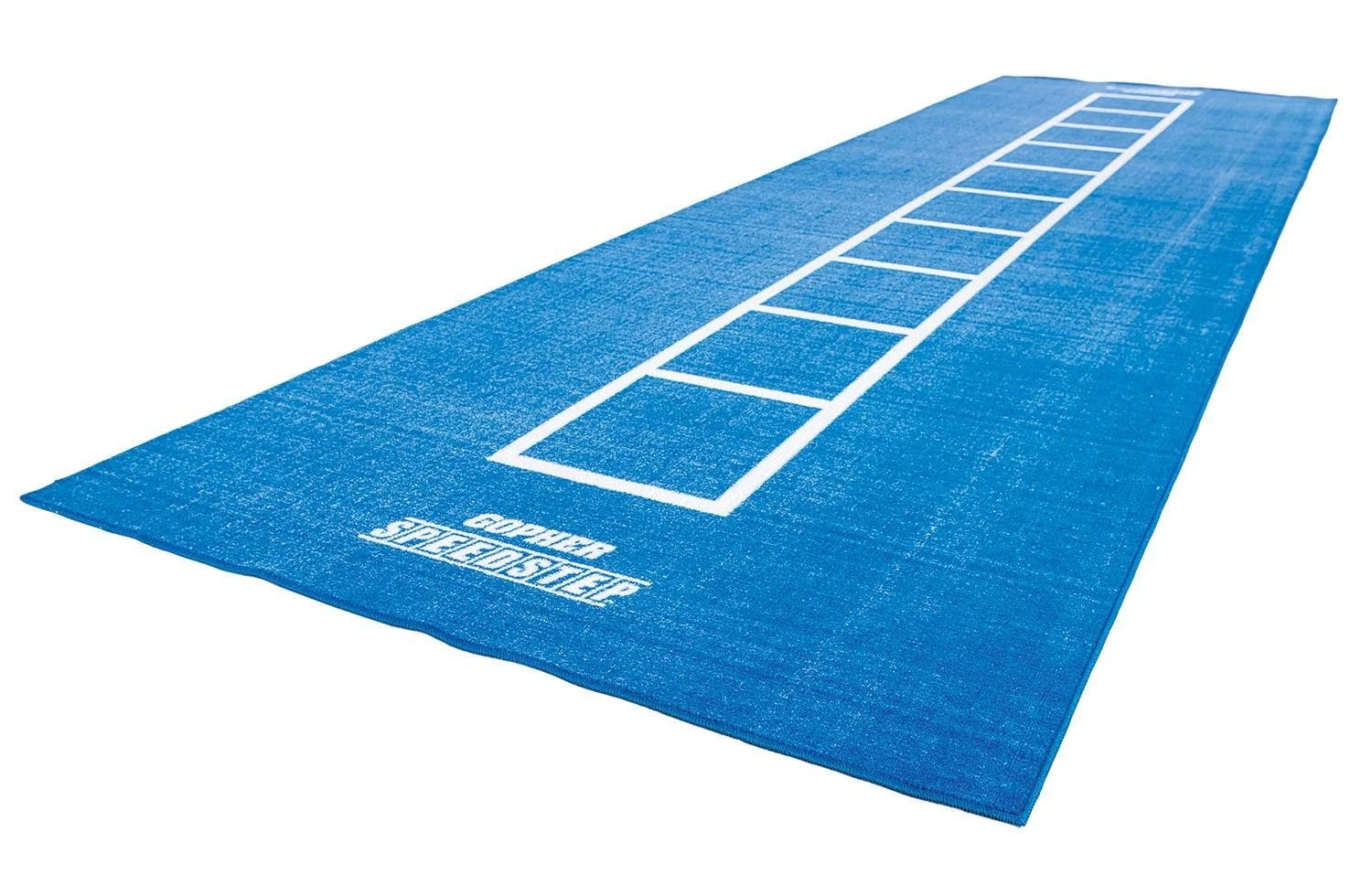 The lack of physical rungs makes tripping impossible and the lack of rivets and other metal components keeps floors free from damage. The ladder is printed in white on a bright blue carpeted mat, making it highly visible during use. The printed ladder is 14’9”L x 17”W while the full mat is 18”L x 60-1/2”W to provide ample training space so users don’t have to transition off the mat during drills.